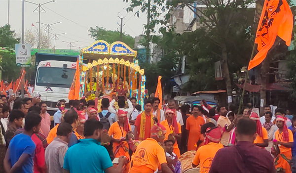 ହିଞ୍ଜିଳିକାଟୁ,୩୦।୩(ଡି.ଏନ୍.ଏ.): ଗଞ୍ଜାମ ଜିଲା ହିଞ୍ଜିଳିକାଟୁ ବଜରଙ୍ଗ ଦଳ ପକ୍ଷରୁ ଗୁରୁବାର ରାମନବମୀ ସମାରୋହ ଏବଂ ଶୋଭାଯାତ୍ରା ପାଳିତ ହୋଇଯାଇଛି । ଏହି ଅବସରରେ ହିଞ୍ଜିଳିକାଟୁ ରେଗିଡିସାହି ଚାରିଛଖ ହନୁମାନ ମନ୍ଦିରରେ ସ୍ବତନ୍ତ୍ର ପୂଜାର୍ଚ୍ଚନା କରାଯାଇଥିଲା। ଅପରାହ୍ନରେ ବଜରଙ୍ଗ ଦଳର ଶତାଧିକ କର୍ମୀ ହାତରେ ଗୈରିକ ପତକା ଧରି ଘଣ୍ଟ, ସଂକୀର୍ତ୍ତନରେ ବସ୍ଷ୍ଟାଣ୍ଡରୁ ଏକ ଶୋଭାଯାତ୍ରା ବାହାରି ୫୯ ନମ୍ବର ଜାତୀୟ ରାଜପଥ ମୁଖ୍ୟ ବଜାର ଦେଇ ବଇଁଚବଣିଆ ଯାଇଥିଲେ। ସେଠାରୁ ଶୋଭାଯାତ୍ରା ଆଙ୍କୋରଡା, ଥାନାସାହି, ହିଞ୍ଜିଳି, ବ୍ଳକ କଲୋନୀ ଦେଇ ପୁଣି ହନୁମାନ ମନ୍ଦିରରେ ପହଞ୍ଚିଥିଲା। ଏପରିକି ସୁସଜ୍ଜିତ ରଥରେ ରାମ, ଲକ୍ଷ୍ମଣ, ସୀତା, ହନୁମାନ ବେଶଧାରୀଙ୍କୁ ରାସ୍ତାରେ ଲୋକ ସ୍ବାଗତ ଓ ବନ୍ଦାପନା କରିଥିଲେ। ବଜରଙ୍ଗ ଦଳ ଓ ବିଶ୍ବ ହିନ୍ଦୁ ପରିଷଦର ଆଲୋକ ନାୟକ, କଳିଙ୍ଗ ମୁନି, ଭାଜପା ନେତା ଶିଶିର ମିଶ୍ର, ମାଧବ ଗୌଡ, ସନ୍ତୋଷ କୁମାର ପାଣିଗ୍ରାହୀ, ରଜନୀକାନ୍ତ ପାଢୀ, ନୟନ ମଳିକ, ଗିରିଧର ପାଢୀ, ପି. ଅନ୍ତର୍ଯ୍ୟାମୀ ପାତ୍ର ପ୍ରମୁଖ ଉପସ୍ଥିତ ଥିଲେ।