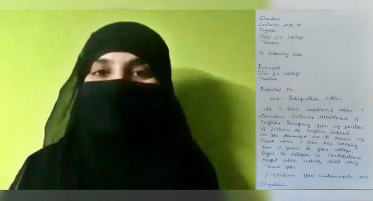 ବେଙ୍ଗାଲୁରୁ,୧୯।୨: କର୍ନାଟକର ଶିକ୍ଷାନୁଷ୍ଠାନଗୁଡ଼ିକରେ ହିଜାବକୁ ନେଇ କିଛିଦିନ ହେଲା ବିବାଦ ଲାଗି ରହିଥିବାବେଳେ ଏହାର ପ୍ରତିବାଦରେ ତୁମ୍କୁରୁସ୍ଥିତ ଜୈନ୍ ପିୟୁ କଲେଜର ଜଣେ ଅଧ୍ୟାପିକା ଚାକିରିରୁ ଇସ୍ତଫା ଦେଇଛନ୍ତି। ଗତ ସପ୍ତାହରେ କର୍ନାଟକ ହାଇକୋର୍ଟଙ୍କ ନିର୍ଦ୍ଦେଶକ୍ରମେ ଶିକ୍ଷାନୁଷ୍ଠାନ ପରିସରରେ ଛାତ୍ରୀଛାତ୍ର ଓ ଶିକ୍ଷକ କେହି ଧର୍ମୀୟ ପ୍ରତୀକ ନ ପିନ୍ଧିବାକୁ ସରକାରଙ୍କ ପକ୍ଷରୁ ନିର୍ଦ୍ଦେଶ ଦିଆଯାଇଛି। ଜୈନ ପିୟୁ କଲେଜର ଇଂଲିଶ ଅଧ୍ୟାପିକା ଥିବା ଚାନ୍ଦିନୀ ନାଜ୍ କହିଛନ୍ତି, ସେ ୩ ବର୍ଷ ହେଲା ଏଠାରେ ଅତିଥି ଅଧ୍ୟାପିକା ଭାବେ କାର୍ଯ୍ୟ କରିଆସୁଛନ୍ତି। କେବେ ସେ କୌଣସି ଅସୁବିଧା ଅନୁଭବ କରି ନ ଥିଲେ। ଗୁରୁବାର ସକାଳେ ପ୍ରିନ୍ସିପାଲ ସମସ୍ତ ଶିକ୍ଷକଙ୍କୁ ଡାକି ହିଜାବ କିମ୍ବା କୌଣସି ଧର୍ମୀୟ ପ୍ରତୀକ ବସ୍ତ୍ର ନ ପିନ୍ଧିବା ପାଇଁ ନିର୍ଦ୍ଦେଶ ଆସିଥିବା କହିଥିଲେ। ଏଭଳି କଟକଣା ତାଙ୍କ ଆତ୍ମସମ୍ମାନ ବିରୋଧରେ ଯାଉଥିବାରୁ ସେ ଇସ୍ତଫା ଦେଇଥିବା କହିଛନ୍ତି। ହିଜାବ ବିନା ସେ କଲେଜରେ କାମ କରିପାରିବେ ନାହିଁ ବୋଲି କହିଥିବାର ଭିଡିଓ ବାର୍ତ୍ତା ସୋସିଆଲ ମିଡିଆରେ ଭାଇରାଲ ହୋଇଛି।