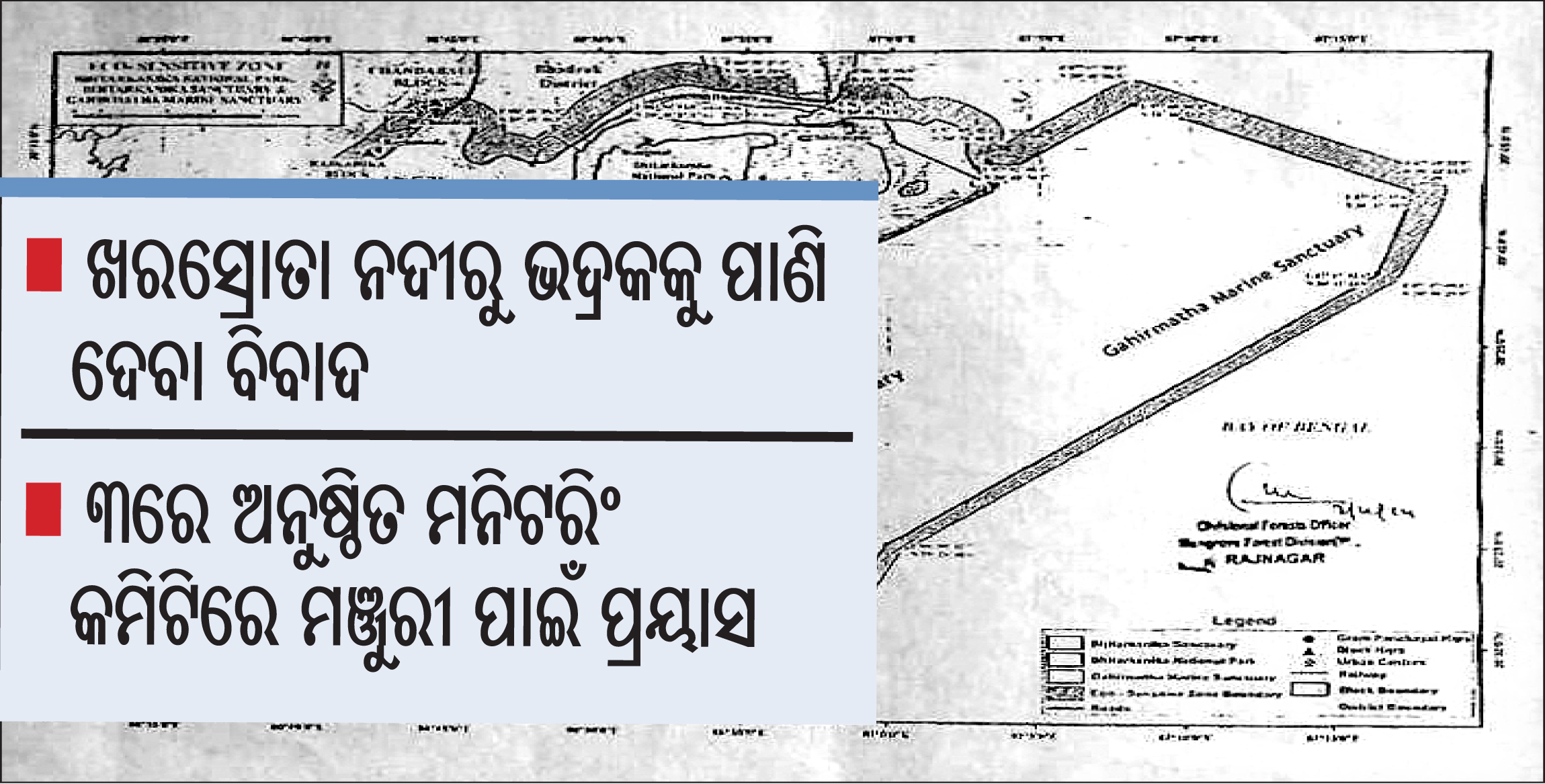 କେନ୍ଦ୍ରାପଡା ଅଫିସ,୩।୧୨:କେନ୍ଦ୍ରାପଡ଼ା ଜିଲା ଜାତୀୟ ଉଦ୍ୟାନ ଭିତରକନିକାର ପରିବେଶ ସମ୍ବେଦନଶୀଳ ଅଞ୍ଚଳ (ଇକୋ ସେନ୍ସିଟିଭ ଜୋନ)ରେ ଯାଉଛି। ଜିଲାର ରାଜକନିକା ବ୍ଲକ ବରୁଣାଡିହାରେ ନିର୍ମାଣାଧୀନ ଖରସ୍ରୋତା ମେଗା ପାନୀୟ ଜଳ ପ୍ରକଳ୍ପ ପରିବେଶ ସମ୍ବେଦନଶୀଳ ଜୋନରେ ଯାଉଛି। ତେଣୁ ଏହି ପ୍ରତିବନ୍ଧକ ଏବେ ଜିଲା ପ୍ରଶାସନର ମୁଣ୍ଡବିନ୍ଧାର କାରଣ ସାଜିଛି। ପ୍ରକଳ୍ପରୁ ଭଦ୍ରକକୁ ପାଣି ଯୋଗାଣ କରିବାକୁ ସରକାର ଚାହୁଁଥିବା ବେଳେ ସ୍ଥାନୀୟ ଅଞ୍ଚଳବାସୀ ଓ ଖରସ୍ରୋତା ନଦୀ ବଞ୍ଚାଅ ସଂଗ୍ରାମ ସମିତି ବିରୋଧ କରୁଛି। ଅନ୍ୟପକ୍ଷରେ ଏହି ଅଞ୍ଚଳରେ ବର୍ଷାଜଳ ସଂରକ୍ଷଣ ପାଇଁ ବ୍ୟବସ୍ଥା କରିବାକୁ କେନ୍ଦ୍ର ସରକାରଙ୍କ ପରିବେଶ, ବନ ଓ ପାଣିପାଗ ବିଭାଗ ୨୦୧୫ ଜୁନ ୧୬ରେ ବିଜ୍ଞପ୍ତି ପ୍ରକାଶ କରିଛନ୍ତି। ଏଥିସହ ବନ, ଉଦ୍ୟାନ କୃଷି, କୃଷି, ପାର୍କ ବ୍ୟତୀତ ଅନ୍ୟ ପ୍ରକଳ୍ପ ଆରମ୍ଭ ପାଇଁ ଏହି ବିଜ୍ଞପ୍ତିରେ ପ୍ରତିବନ୍ଧକ ଅଛି। ନୂତନ ପ୍ରକଳ୍ପ ଆରମ୍ଭ ପୂର୍ବରୁ ପରିବେଶ ଉପରେ ସମ୍ଭାବିତ ପ୍ରଭାବର ବିଜ୍ଞାନ ଭିତ୍ତିକ ବିଶ୍ଳେଷଣ ପରେ ମନିଟରିଂ କମିଟିରେ ମଞ୍ଜୁରୀ ଆବଶ୍ୟକ। ଖରସ୍ରୋତା ନଦୀ ବଞ୍ଚାଅ ସଂଗ୍ରାମ ସମିତି ସହ ପ୍ରଶାସନିକ ଅଧିକାରୀନଙ୍କ ଦୁଇଥର ଆଲୋଚନା ବିଫଳ ହୋଇଛି। ଏବେ ପ୍ରଶାସନ ତରବରିଆ ଭାବେ ପରିବେଶ ସମ୍ବେଦନଶୀଳ ଜୋନ କମିଟିକୁ ଡାକି ଏହାର ମଞ୍ଜୁରୀ ପାଇଁ ଚେଷ୍ଟା ଚଳାଇଥିବା ଜଣାପଡିଛି।