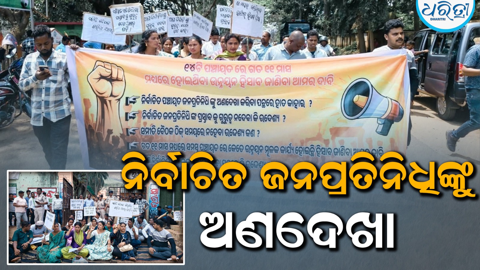 ପଟ୍ଟାଙ୍ଗି,୨୬ା୩(ଶରତ କୁମାର ଧଳ): କୋରାପୁଟ ଜିଲା ପଟ୍ଟାଙ୍ଗି ବ୍ଲକ କାର୍ଯ୍ୟାଳୟ ସମ୍ମୁଖରେ ପଞ୍ଚାୟତ ନିର୍ବାଚିତ ଜନପ୍ରତିନିଧିଙ୍କୁ ଅଣଦେଖା ପ୍ରତିବାଦ କରି ବ୍ଲକ ମୁଖ୍ୟ ଫାଟକ ସମ୍ମୁଖରେ ଜିଲାପରିଷଦ ସଭ୍ୟା, ସରପଞ୍ଚ, ସମିତି ସଭ୍ୟାମ୍ସଭ୍ୟ ଏବଂ ଓ୍ବାର୍ଡସଭ୍ୟ ପ୍ରମୁଖ ଧାରଣା ଦେଇ ପ୍ରତିବାଦ ଜଣାଇଛନ୍ତି।
