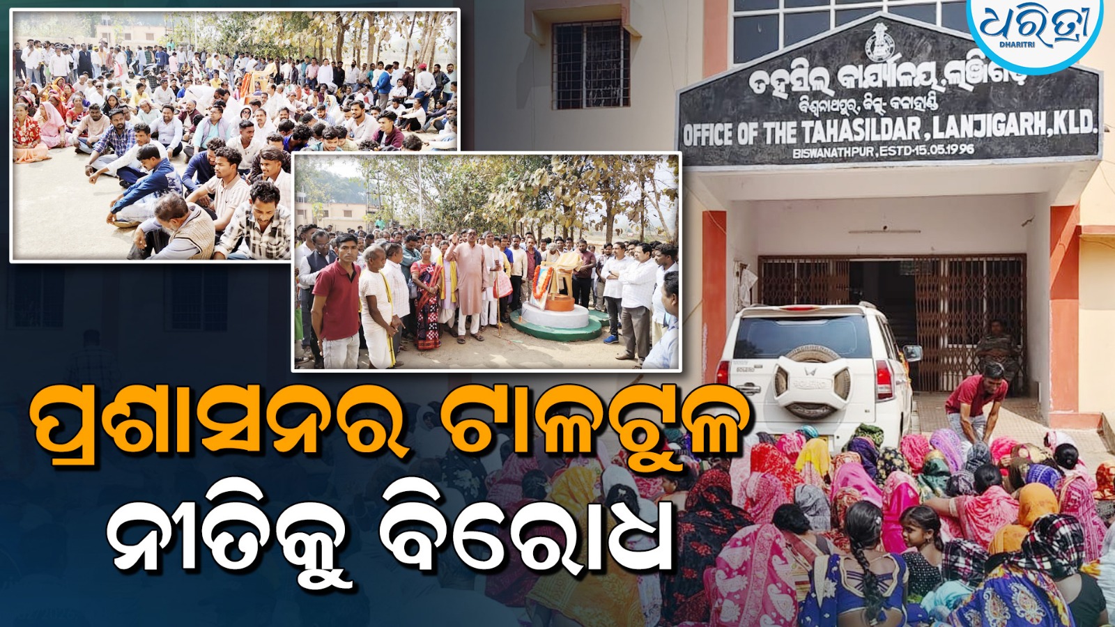 ଲାଞ୍ଜିଗଡ, ୨।୨(ରମେଶ ଚନ୍ଦ୍ର ନାୟକ): କଳାହାଣ୍ଡି ଜିଲା ଲାଞ୍ଜିଗଡ ବ୍ଲକ ଲାଞ୍ଜିଗଡର ସବ-ରେଜିଷ୍ଟର କାର୍ଯ୍ୟାଳୟ ସ୍ଥାପନରେ ପ୍ରଶାସନର ଟାଳଟୁଳ ନୀତିକୁ ବିରୋଧ କରି ଅଞ୍ଚଳବାସୀ ସୋମବାର ଲାଞ୍ଜିଗଡ ତହସିଲ ଅଫିସ ଘେରାଉ କରିଛନ୍ତି।