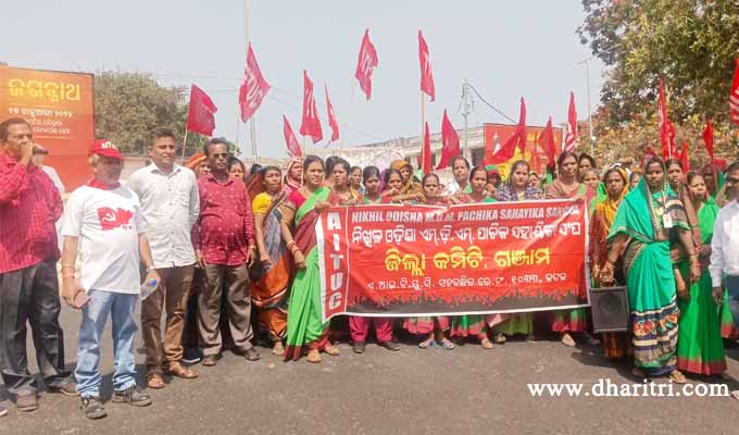 ଛତ୍ରପୁର,୨୨ା୨(ଦିଲ୍ଲୀପ ସାମଲ/(ସନ୍ତୋଷ ପାଢ଼ୀ): ଗଞ୍ଜାମ ଜିଲା ଏଆଇଟିୟୁସି ସହ ବନ୍ଧିତ ପାଚିକା ସଂଘ ପକ୍ଷରୁ ୬ ଦଫା ଦାବି ନେଇ ଗୁରୁବାର ଗଞ୍ଜାମ ଜିଲାପାଳଙ୍କ ଅଫିସ ସମ୍ମୁଖରେ ବିକ୍ଷୋଭ ପ୍ରଦର୍ଶନ କରାଯାଇଛି। ପାଚିକାମାନେ ସରକାରୀ ବିଦ୍ୟାଳୟରେ ମଧ୍ୟାହ୍ନଭୋଜନ ଯୋଜନାକୁ ସଫଳ କରିଆସୁଛନ୍ତି। ବିଦ୍ୟାଳୟରେ ୬ ଘଣ୍ଟାରୁ ଅଧିକ ସମୟ ପ୍ରଯ୍ୟନ୍ତ ରହି କାମ କରି ଆସୁଥିଲେ ବି ସେମାନେ ସର୍ବନିମ୍ନ ମଜୁରୀରୁ ବଞ୍ଚିତ ହେଉଛନ୍ତି। ରାଜ୍ୟରେ ପାଚିକାମାନଙ୍କୁ ପୂର୍ବରୁ ମାସିକ ୧୪୦୦ ଶହ ଟଙ୍କା ଥିବା ବେଳେ ମାତ୍ର ୬ ଶହ ଟଙ୍କା ବୃଦ୍ଧି ହୋଇ ୨୦୦୦ ଟଙ୍କା କରାଯାଇଛି ଯାହା କି ଅନ୍ୟ ରାଜ୍ୟ ତୁଳନାରେ କମ୍। ତେଣୁ ରାଜ୍ୟ ସରକାର ଏହାକୁ ବିଚାର କରି ମାସିକ ୧୮୦୦୦ ଟଙ୍କା ଦାବି କରାଯାଇଛି। ପରେ ୫ ଲକ୍ଷ ପ୍ରଦାନ, ପ୍ରସୂତିକାଳୀନ ଛୁଟି ୧୮୦ ଦିନ, ମଧ୍ୟାହ୍ନଭୋଜନ କାର୍ଯ୍ୟକ୍ରମ ବ୍ୟତିତ ଅନ୍ୟ କୌଣସି କାର୍ଯ୍ୟରେ ନିୟୋଜିତ କରା ନ ଯାଉ, କାର୍ଯ୍ୟରତ ବେଳେ ଦୁର୍ଘଟଣା ଘଟିଲେ ସମ୍ପୂର୍ଣ୍ଣ ମେଡିକାଲ ଖର୍ଚ୍ଚ ଦିଆଯାଉ, ପାଚିକାମାନଙ୍କର ବକେୟା ୨୪ ମାସର ଟଙ୍କା ଆସିଥିବା ବେଳେ କିଛି ପାଚିକା ପାଇ ନାହାନ୍ତି ତେଣୁ ତୁରନ୍ତ ପ୍ରଦାନ କରିବା, ୧୦ ମାସ ବଦଳରେ ୧୨ ମାସର ଭତ୍ତା ପ୍ରଦାନ କରାଯାଉ ଏବଂ ଅବସର ପରେ ପେନ୍ସନ୍ ପ୍ରଦାନ ଦାବି କରାଯାଇଥିଲା। ଏହି ଦାବିଗୁଡ଼ିକ ପୂରଣ ନ ହେଲେ ଆଗାମୀ ଦିନରେ ଆନ୍ଦୋଳନକୁ ବ୍ୟାପକ କରାଯିବା ବୋଲି ଚେତାବନୀ ଦେଇଥିଲେ। ପରେ ଜିଲାପାଳଙ୍କ ଜରିଆରେ ମୁଖ୍ୟମନ୍ତ୍ରୀଙ୍କ ନିକଟକୁ ଏକ ସ୍ମାରକପତ୍ର ପ୍ରଦାନ କରାଯାଇଛି। ଏହି ସ୍ମାରକପତ୍ର ପ୍ରଦାନ ବେଳେ ନିଖିଳ ଓଡ଼ିଶା ଏମ୍ଡିଏମ୍ ପାଚିକା ସହାୟକ ସଂଘ ଗଞ୍ଜାମ ଜିଲା କମିଟି ସଭାପତି ରାଜେନ୍ଦ୍ର ଦାସ,ସମ୍ପାଦିକା କୁନି ମହାପାତ୍ର, ଶ୍ରମିକ ନେତା ନୀଳକଣ୍ଠ ଦାଶ ଓ ଦୁର୍ଯ୍ୟୋଧନ ନାହାକ,ସିଏଚ୍ ଜନାର୍ଦ୍ଦନ ରେଡ୍ଡୀଙ୍କ ସମେତ ବହୁ ପାଚିକା ସାମିଲ ଥିଲେ। ପ୍ରାରମ୍ଭରେ ଛତ୍ରପୁରସ୍ଥିତ ଲକ୍ଷ୍ମଣ ଭବନରୁ ଏକ ବିରାଟ ଶୋଭାଯାତ୍ରାରେ ବାହାରି ଜିଲାପାଳଙ୍କ କାର୍ଯ୍ୟାଳୟ ନିକଟରେ ପହଞ୍ଚିଥିଲେ।
