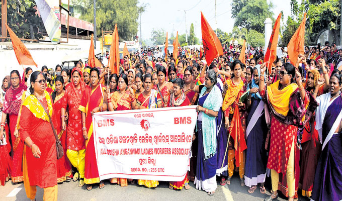 ପୁରୀ ଅଫିସ,୩୧।୧୨: ଭାରତୀୟ ମଜଦୁର ସଂଘ ସଂଲଗ୍ନ ଅଲ୍ ଓଡ଼ିଶା ଅଙ୍ଗନୱାଡ଼ି ଲେଡିଜ୍ ୱାର୍କର୍ସ ଆସୋସିଏଶନର କର୍ମଚାରୀମାନଙ୍କ ଦୀର୍ଘଦିନର ଦାବିଗୁଡିକୁ ପୂରଣ କରିବା ଦାବିରେ ଶୁକ୍ରବାର ଆସୋସିଏଶନର ପୁରୀ ଜିଲା ଶାଖା ପକ୍ଷରୁ ଏକ ବିଶାଳ ପଦଯାତ୍ରା କରାଯାଇ ଜିଲାପାଳଙ୍କ କାର୍ଯ୍ୟାଳୟ ସମ୍ମୁଖରେ ବିକ୍ଷୋଭ ପ୍ରର୍ଦଶନ କରାଯାଇଥିଲା। ଏଥିସହ ମୁଖ୍ୟମନ୍ତ୍ରୀଙ୍କ ଉଦ୍ଦେଶ୍ୟରେ ଏକ ୮ଦଫା ସମ୍ବଳିତ ଦାବିପତ୍ର ପ୍ରଦାନ କରାଯାଇଛି। ଆସୋସିଏଶନ୍ ପକ୍ଷରୁ ଦାବିପତ୍ରରେ ଦର୍ଶାଯାଇଛି ଯେ, ୨୦୧୮ମସିହାରେ ଆନ୍ଦୋଳନ ସମୟରେ ବହିଷ୍କୃତ ହୋଇଥିବା ୬ଜଣ ଅଙ୍ଗନୱାଡି କର୍ମୀଙ୍କୁ ପୁନଃ ନିଯୁକ୍ତି ପ୍ରଦାନ କରିବା। ଅଙ୍ଗନୱାଡି କର୍ମଚାରୀମାନଙ୍କୁ ସରକାରୀ କର୍ମଚାରୀର ମାନ୍ୟତା ପ୍ରଦାନ। ଯେତେଦିନ ପର୍ଯ୍ୟନ୍ତ ମାନ୍ୟତା ପ୍ରଦାନ କରାଯାଇନାହିଁ ସେତିକିଦିନ ପର୍ଯ୍ୟନ୍ତ କର୍ମୀମାନଙ୍କୁ ୧୮ହଜାର ଏବଂ ସହାୟିକାମାନଙ୍କୁ ୯ହଜାର ଟଙ୍କା ପ୍ରଦାନ କରିବା ସହ ଇପିଏଫ୍, ଇଏସ୍ଆଇସି ଏବଂ ଗ୍ରାଜୁଇଟିରେ ସାମିଲ କରିବା। ମିନି ଅଙ୍ଗନୱାଡ଼ି ଉଚ୍ଛେଦ କରି ମିନି ଅଙ୍ଗନୱାଡ଼ି କର୍ମୀଙ୍କୁ ମୁଖ୍ୟ ଅଙ୍ଗନୱାଡି କର୍ମୀର ମାନ୍ୟତା ପ୍ରଦାନ କରାଯାଉ। କର୍ମୀମାନଙ୍କୁ ଅବସରକାଳୀନ ସହାୟତା ରାଶି ୫ଲକ୍ଷ ଟଙ୍କା ସହ ମାସକୁ ପେନ୍ସନ ୫ ହଜାର ଟଙ୍କା ପ୍ରଦାନ କରାଯାଉ। କାର୍ଯ୍ୟରତ ଅବସ୍ଥାରେ ମୃତ୍ୟୁ କଲେ ଅଙ୍ଗନୱାଡି କର୍ମୀମାନଙ୍କୁ ମୃତ୍ୟୁକାଳୀନ ୫ ଲକ୍ଷ ସହାୟତା ରାଶି ପ୍ରଦାନ କରିବା ସହ ପରିବାରର ଜଣଙ୍କୁ ଚାକିରି ପ୍ରଦାନ କରାଯାଉ।