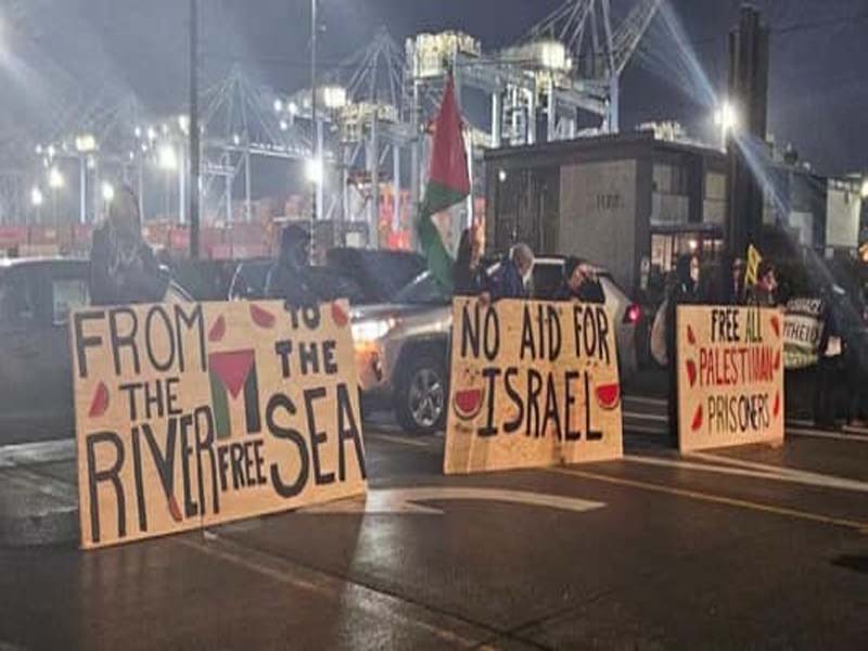 ଏହାରି ଭିତରେ ଶହଶହ ପ୍ରଦର୍ଶନକାରୀମାନେ ଓ୍ବାଶିଂଟନ୍ର ଟୋକମା ବନ୍ଦରରେ ବହୁ ଅସ୍ତ୍ରଶସ୍ତ୍ର ଓ ଗୋଳାବାରୁଦ ଯୋଗାଣ ବେଳେ ଜବତ କରିଛନ୍ତି। ସେମାନେ ବନ୍ଦରରେ ପ୍ରଦର୍ଶନ କରିବା ସମୟରେ ଆମେରିକାର ଏକ ସେନା ଜାହାଜ ଗୋଳା ବାରୁଦ ଓ ଅସ୍ତ୍ରଶସ୍ତ୍ର ସହ ଇସ୍ରାଏଲ ଯିବା ପାଇଁ ପ୍ରସ୍ତୁତ ହେଉଥିଲା। ଏହି ସମୟରେ ପ୍ରଦର୍ଶନକାରୀମାନେ ଜାହାଜକୁ ଅଧା ବାଟରେ ରୋକିଛନ୍ତି।