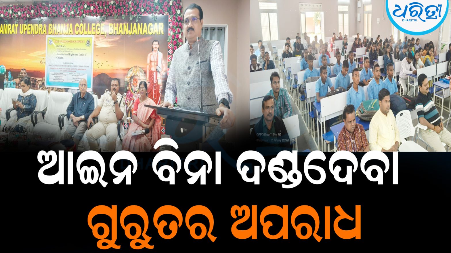 ଭଞ୍ଜନଗର,୨୩।୧(ବାବୁଲା ପ୍ରଧାନ):ଗଞ୍ଜାମ ଜିଲା ଭଞ୍ଜନଗର ତାଲୁକ ଆଇନ ସେବା କମିଟି ପକ୍ଷରୁ ଶୁକ୍ରବାର ଭଞ୍ଜନଗର କବି ସମ୍ରାଟ ଉପେନ୍ଦ୍ର ଭଞ୍ଜ ମହାବିଦ୍ୟାଳୟରେ ଏକ ଆଇନ ସଚେତନତା କାର୍ଯ୍ୟକ୍ରମ ଅନୁଷ୍ଠିତ ହୋଇଯାଇଛି। ଭଞ୍ଜନଗର ଅତିରିକ୍ତ ଜିଲା ଦୌରାଜଜ ତଥା ଅଧ୍ୟକ୍ଷ, ତାଲୁକ ଆଇନ ସେବା କମିଟି ସେଖ ମହମ୍ମଦ କଏସ ମୁଖ୍ୟ ଅତିଥି ଭାବେ ଯୋଗଦେଇ ପୋଷ ଆଇନ (କାର୍ଯ୍ୟସ୍ଥଳରେ ଯୌନ ଉତ୍ପୀଡନ ନିରୋଧ ଆଇନ), ସାମ୍ବିଧାନିକ ଅଧିକାର ଓ ନାଗରିକଙ୍କ କର୍ତ୍ତବ୍ୟ ସମ୍ପର୍କରେ କହିଥିଲେ। ଏଥିସହ ସେ କହିଥିଲେ ଯେ, ଲୋକେ ଆଇନ ବିଷୟରେ ସଚେତନ ଥିଲେ ସମାଜରେ ନ୍ୟାୟ ଓ ସମତା ପ୍ରତିଷ୍ଠା ହୋଇପାରିବ। ଆଇନରୁ ଉର୍ଦ୍ଧ୍ୱରୁ କିଏ ନାହିଁ, ସମ୍ବିଧାନ ହେଉଛି ଶ୍ରେଷ୍ଠ। ଅନ୍ୟକୁ ନୀଚ ଦେଖାଇବା ଠିକ ନୁହଁ। ଅଧିକାର ଚାହୁଁଛ ତେବେ କର୍ତ୍ତବ୍ୟ ମଧ୍ୟ ଠିକ ଭାବେ କରିବାକୁ ପଡ଼ିବ। ଶାନ୍ତିପୂର୍ଣ୍ଣ ଭାବେ ଆମ ଦେଶରେ ବସବାସ କରିବା ଆମର ଅଧିକାର ଅଛି। ଆମ ଦେଶର ସମ୍ବିଧାନ ହେଉଛି ବିଶର ବୃହତ୍ତମ ଓ ଶକ୍ତିଶାଳୀ ସମ୍ବିଧାନ। ଅନେକ ଦେଶର ସମ୍ବିଧାନ ବିଫଳ ହୋଇଛି। କିନ୍ତୁ ଆମ ସମ୍ବିଧାନ ଆମକୁ ଶାନ୍ତିରେ ରହିବାକୁ ଦେଇଛି। ଏଠି ସବୁ ଧର୍ମର ଲୋକ ବସବାସ କରନ୍ତି। ଆମକୁ ସ୍ବାଧୀନତା ମିଳିଛି ବୋଲି ଅନ୍ୟର କିଛି କ୍ଷତି ହେଲାଭଳି କାର୍ଯ୍ୟ କରିବା ନାହିଁ। ସନ୍ଦେହର କାହାକୁ ଦଣ୍ଡିତ କରିବା ନାହିଁ। ସେଥିପାଇଁ ଆଇନ ଅଛି। ଅନ୍ୟର ସମ୍ମାନକୁ ଆଖି ଆଗରେ ରଖି ବକ୍ତବ୍ୟ ଦେବାକୁ ପଡିବ। ବିନା ଆଇନ ପ୍ରକ୍ରିୟାରେ କାହାକୁ ଦଣ୍ଡ ଦେଇହେବ ନାହିଁ। ଯଦି ଏଭଳି ବେନିୟମ କାର୍ଯ୍ୟ କିଏ କରେ ତେବେ ତାହା ଅପରାଧ। ଜାତୀୟ ପତାକା, ଜାତୀୟ ସଙ୍ଗୀତ ଏବଂ ସମ୍ବିଧାନକୁ ସମ୍ମାନ ଦେବା। ସ୍ବାଧୀନତା ସଂଗ୍ରାମୀମାନଙ୍କ ବିରୋଧର ମନ୍ତବ୍ୟ ଦେବା ଠିକ ନୁହେଁ। ସେମାନେ ଦେଶ ସ୍ବାଧୀନତା ପାଇଁ ବହୁ କଷ୍ଟ ସ୍ବୀକାର କରିଛନ୍ତି। ଜାତୀୟ ପତାକାକୁ ସର୍ବଦା ଅଣ୍ଟା ଉପରକୁ ପିନ୍ଧିବା। ୧୯୭୬ ମସିହା ପୂର୍ବରୁ ଅଧିକାର ଉପରେ ଆଲୋଚନା ହେଉଥିଲା। କିନ୍ତୁ ୧୯୭୬ ମସିହାରେ ଜରୁରୀକାଳୀନ ପରିସ୍ଥିତି ପରେ ମୌଳିକ କର୍ତ୍ତବ୍ୟ କଥା ଆସିଥିଲା । ତେଣୁ ଅଧିକାର ହାସଲ କରିବାକୁ ହେଲେ ନିଜ କର୍ତ୍ତବ୍ୟ ସଠିକ ଭାବେ ପାଳନ କରିବାକୁ ପଡିବ ବୋଲି ବିଚାରପତି ସେଖ ମହମ୍ମଦ କଏସ କହିଥିଲେ।