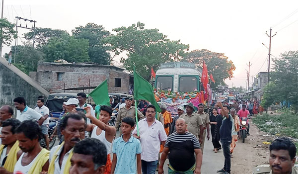 ସୋରଡା,୧୧।୫(ଡି.ଏନ.ଏ): ପୁରୀ ରଥଯାତ୍ରା ପାଇଁ ଦକ୍ଷିଣ ଘୁମୁସର ଗଜଲବାଡି ବନାଞ୍ଚଳରୁ ୨୨ଟି କାଠ ପୁରୀ ଯାଇଛି। ଗାଜଳବାଡିଠାରେ କାଠ ବୋଝେଇ ଟ୍ରକକୁ ପ୍ରଥମେ ବନ୍ଦାପନା ପୂଜା ପରେ ସୋରଡା ଆସିଥିଲା । ରାସ୍ତାରେ ନାହାଗଣ୍ଡା,ଗୋଛା,ପିପଲପାଙ୍କା,ଅଶୂରବନ୍ଧ ଠାରେ ମହିଳାମାନେ ପୂଜା କରିବା ପରେ ପୋଡାଖାରିଠାରେ ନାମସଙ୍କୀର୍ତ୍ତନ ଦଳ ସହ ଜନସାଧାରଣ ବନ୍ଦାପନା କରିଥିଲେ। ସାରେ ସୋରଡା ଗଣିଛକଠାରେ ଏନଏସିର ସମସ୍ତ ଅଧିକାରୀ ସମେତ ସହରବାସୀ ଉପସ୍ଥିତ ରହି ନୂତନ ବସ୍ତ୍ର , ହଳଦୀ, ଚନ୍ଦନ ଲଗାଇଥିଲେ। ବିଧାୟକ ପୂର୍ଣ୍ଣଚନ୍ଦ୍ର ସାଇଁ ,ଏନଏସି ଅଧ୍ୟକ୍ଷ ଶିବଶଙ୍କର ପଣ୍ଡା ,ଉପାଧ୍ୟକ୍ଷା ଭାଗ୍ୟଲତା ଡାକୁଆ,ଆଇଆଇସି ରମେଶ କୁମାର ପ୍ରଧାନ ,ସମସ୍ତ କାଉନସିଲର ମାନେ ଗଜଲବାଡି ଠାରୁ ସୋରଡା ପର୍ଯ୍ୟନ୍ତ ଶୋଭାଯାତ୍ରାରେ କାଠ ଗାଡି ସହ ଆସିଥିଲେ । ବନବିଭାଗର ସମସ୍ତ ଅଧିକାରୀ ପରିଚାଳନା କରିଥିଲେ । ସମସ୍ତ ସ୍ଥାନରେ ଜନସାଧାରଣ ନୂତନ ଲୁଗା ,ଗାମୁଛା କାଠ ଉପରେ ପକାଇଥିଲେ। ସହରରେ ଗାଡି ଜୀବାସମୟରେ ଅତ୍ୟନ୍ତ ଭିଡ ପରିଲକ୍ଷିତ ହୋଇଥିଲା।