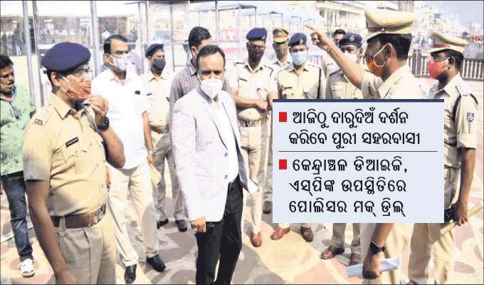 ପୁରୀ ଅଫିସ,୨୬ା୧୨: ପୁରୀ ସହରବାସୀ ଶନିବାରଠାରୁ ଶ୍ରୀମନ୍ଦିରରେ ଦାରୁଦିଅଁ ଦର୍ଶନ କରିବେ। ଏହି ଦର୍ଶନ ବ୍ୟବସ୍ଥା ୩୧ ତାରିଖ ପର୍ଯ୍ୟନ୍ତ ଚାଲିବ। ଏ ନେଇ ପ୍ରଶାସନ ସମସ୍ତ ପ୍ରସ୍ତୁତି ଶେଷ କରିଥିବା ବେଳେ ଶୁକ୍ରବାର ପୋଲିସ ପକ୍ଷରୁ ମକ୍ଡ୍ରିଲ କରାଯାଇଛି। କେନ୍ଦ୍ରାଞ୍ଚଳ ଡିଆଇଜି ଆଶିଷ ସିଂ ଏବଂ ପୁରୀ ଏସ୍ପି କନୱର ବିଶାଲ ସିଂଙ୍କ ଉପସ୍ଥିତିରେ ଏହି ମକ୍ଡ୍ରିଲ୍ ହୋଇଛି। ସୂଚନା ଅନୁଯାୟୀ, ଦର୍ଶନ ବ୍ୟବସ୍ଥାକୁ ସୁନିୟନ୍ତ୍ରିତ କରିବା ତଥା ସୁରକ୍ଷା ବ୍ୟବସ୍ଥା ନିମନ୍ତେ ୧୮ ପ୍ଲାଟୁନ୍ ଓ ୩ ସେକ୍ସନ ପୋଲିସ ଫୋର୍ସ ମୁତୟନ ହେବେ। ଶ୍ରୀମନ୍ଦିର ଭିତରେ ୨ଜଣ ଇନ୍ସପେକ୍ଟର, ୮ଜଣ ଏସ୍ଆଇ ଏବଂ ଏଏସ୍ଆଇ, ୧୪ଜଣ ମହିଳା କନଷ୍ଟେବଳ, ୬ଜଣ ଥାନା କିମ୍ବା ଫାଣ୍ଡି ହାବିଲଦାରଙ୍କ ସମେତ ୩ ପ୍ଲାଟୁନ୍ ପୋଲିସ ମୁତୟନ ହେବେ। ଶ୍ରୀମନ୍ଦିରର ୪ ଦ୍ୱାରରେ ୮ଜଣ ଏସ୍ଆଇ କିମ୍ବା ଏଏସ୍ଆଇ, ୬ ଜଣ ମହିଳା କନଷ୍ଟେବଳ ଓ ୪ ପ୍ଲାଟୁନ୍ ସମେତ ଗୋଟିଏ ସେକ୍ସନ ଫୋର୍ସ ମୁତୟନ କରାଯିବ। ଏହାବ୍ୟତୀତ ସିଂହଦ୍ୱାରରେ ଅତିରିକ୍ତ ପୋଲିସ ମୁତୟନ ରହିବେ। ୨ଜଣ ଇନ୍ସପେକ୍ଟର, ୪ଜଣ ଏସ୍ଆଇ କିମ୍ବା ଏଏସ୍ଆଇ, ୮ଜଣ ମହିଳା କନଷ୍ଟେବଳ, ଗୋଟିଏ ପ୍ଲାଟୁନ୍ ଓ ଗୋଟିଏ ସେକ୍ସନ ଫୋର୍ସ ମୁତୟନ ହେବେ। କିଓସ୍କୋ ପାଖ ଜୋତାଷ୍ଟାଣ୍ଡରେ ୨ ଜଣ ଏସ୍ଆଇ କିମ୍ବା ଏଏସ୍ଆଇ ଓ ୬ ଜଣ ମହିଳା କନଷ୍ଟେବଳ ଦାୟିତ୍ୱରେ ରହିବେ। ବଡ଼ଦାଣ୍ଡ ଦାୟିତ୍ୱରେ ୨ଜଣ ଇନ୍ସପେକ୍ଟର, ୮ ଜଣ ଏସ୍ଆଇ କିମ୍ବା ଏଏସ୍ଆଇ ଓ ୩ ପ୍ଲାଟୁନ୍ ସମେତ ୨ ସେକ୍ସନ ଫୋର୍ସ ରହିବେ। ଦର୍ଶନ ସମୟରେ ପୁରୀ ଟ୍ରାଫିକ୍ ଓ ପାର୍କିଂ ବ୍ୟବସ୍ଥା ପାଇଁ ମଧ୍ୟ ଜଣେ ଇନ୍ସପେକ୍ଟର, ୪ ଜଣ ଏସ୍ଆଇ ଓ ଏଏସ୍ଆଇ, ୨ ପ୍ଲାଟୁନ୍ ପୋଲିସ ଓ ୪୦ ଜଣ ହୋମଗାର୍ଡ ଦାୟିତ୍ୱରେ ରହିବେ। ସେହିଭଳି ସମୁଦ୍ରକୂଳ ଦାୟିତ୍ୱରେ ୨ପ୍ଲାଟୁନ୍ ପୋଲିସ ମୁତୟନ ହେବେ। ଷ୍ଟ୍ରାଇକିଂ ଫୋର୍ସ ବାବଦକୁ ଜଣେ ଇନ୍ସପେକ୍ଟର, ଜଣେ ଏସ୍ଆଇ, ଏଏସ୍ଆଇ ଓ ଗୋଟିଏ ପ୍ଲାଟୁନ ଫୋର୍ସ ମୁତୟନ ରହିବେ। ଦାୟିତ୍ୱରେ ଥିବା ପୋଲିସ ଅଧିକାରୀମାନଙ୍କ କାର୍ଯ୍ୟ ତଦାରଖ କରିବା ପାଇଁ ୨ଜଣ ଅତିରିକ୍ତ ଏସ୍ପି ଏବଂ ୬ ଜଣ ଡିଏସ୍ପିଙ୍କୁ ନିୟୋଜିତ କରାଯିବ।