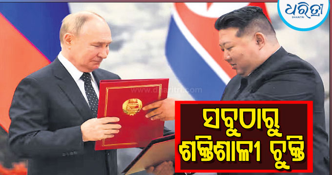 ପ୍ୟୋଙ୍ଗ୍ୟାଙ୍ଗ୍, ୨୦।୬: ରୁଷିଆ ରାଷ୍ଟ୍ରପତି ଭ୍ଲାଡିମିର ପୁଟିନ୍ ୨୪ ବର୍ଷ ପରେ ପ୍ରଥମ ଥର ପାଇଁ ଉତ୍ତର କୋରିଆ ଗସ୍ତରେ ରହିଛନ୍ତି। ଉତ୍ତର କୋରିଆ ରାଜଧାନୀ ପ୍ୟୋଙ୍ଗ୍ୟାଙ୍ଗ୍ଠାରେ ଉଭୟ ରୁଷିଆ ରାଷ୍ଟ୍ରପତି ଭ୍ଲାଡିମିର ପୁଟିନ୍ ଓ ଉତ୍ତର କୋରିଆ ନେତା କିମ୍ ଜୋଙ୍ଗ୍-ଉନ୍ ଏକ ପ୍ରତିରକ୍ଷା ଚୁକ୍ତିରେ ସ୍ବାକ୍ଷର କରିଛନ୍ତି। ତେବେ ୨ ଦେଶ ମଧ୍ୟରେ ସ୍ବାକ୍ଷରିତ ହୋଇଥିବା ଏହି ଚୁକ୍ତିକୁ କିମ୍ ସବୁଠାରୁ ଶକ୍ତିଶାଳୀ ଚୁକ୍ତିର ଆଖ୍ୟା ଦେଇଛନ୍ତି। ଏହି ଚୁକ୍ତି ଅନୁଯାୟୀ କୌଣସି ଦେଶ ଆକ୍ରମଣ କଲେ ଉଭୟେ ରୁଷିଆ ଓ ଉତ୍ତର କୋରିଆ ପରସ୍ପରକୁ ସହଯୋଗ କରିବେ। ସେହିପରି ଏହି ଚୁକ୍ତି ଦ୍ୱାରା ରାଜନୀତି, ଅର୍ଥନୀତି, ସଂସ୍କୃତି, ସାମରିକ ଆଦି ବିଭିନ୍ମ କ୍ଷେତ୍ରରେ ଉଭୟ ଦେଶ ମଧ୍ୟରେ ସହଯୋଗ ସୁଗମ ହୋଇ ପାରିବ। ସେହିପରି ବୈଷୟିକ କ୍ଷେତ୍ରରେ ମଧ୍ୟ ଉଭୟ ଦେଶ ପରସ୍ପରକୁ ସହଯୋଗ କରିବେ ବୋଲି କିମ୍ କହିଛନ୍ତି।