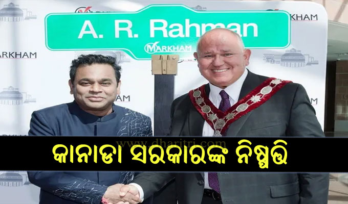 ବମ୍ବେ: ଖ୍ୟାତନାମା ଗାୟକ ତଥା ସଂଗୀତ ନିର୍ଦ୍ଦେଶକ ଏଆର୍‌ ରେହମାନଙ୍କ ନାଁ ଦେଶବିଦେଶରେ କାହିଁରେ କେତେ। ଏଇଥିପାଇଁ ତାଙ୍କୁ ଅନେକ ସମ୍ମାନରେ ସମ୍ମାନିତ କରାଯାଇଥାଏ। ଏବେ ରେହମାନଙ୍କୁ ସମ୍ମାନିତ କରିବା ଲାଗି କାନାଡ଼ା ବଡ଼ ନିଷ୍ପତ୍ତି ନେଇଛି। କାନାଡାର ଆଉ ଏକ ସଡ଼କର ନାମ ରେହମାନଙ୍କ ନାମରେ ରଖାଯାଇଛି। ମରଖମ ସହରର ଏକ ରାସ୍ତାର ନାଁକୁ ବଦଳାଯାଇ ଏଆର୍‌ ରେହମାନ କରାଯାଇଛି।