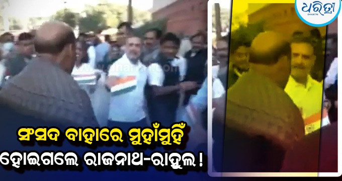 ନୂଆଦିଲ୍ଲୀ,୧୧।୧୨: ଚଳିତ ସଂସଦ ଅଧିବେଶନରେ କଂଗ୍ରେସ କ୍ରମାଗତ ଭାବରେ ସରକାରଙ୍କୁ ଘେରିବାରେ ଲାଗିଛି। କଂଗ୍ରେସ ପ୍ରତିଦିନ ନୂଆ ଢଙ୍ଗରେ ସଂସଦ ବାହାରେ ବିରୋଧ କରୁଛି। ବିରୋଧୀ ଦଳର ନେତା ରାହୁଲ ଗାନ୍ଧୀଙ୍କ ନେତୃତ୍ୱରେ ଏହି ବିରୋଧ ପ୍ରଦର୍ଶନ କରାଯାଉଛି। ଆଜି ବି ଅନେକ କଂଗ୍ରେସ ନେତା ଏହି ବିରୋଧ ପ୍ରଦର୍ଶନ ଜାରି ରଖିଛନ୍ତି। ସଂସଦ ବାହାରେ ବିରୋଧ ପ୍ରଦର୍ଶନବେଳେ କଂଗ୍ରେସ, ଏନଡିଏ ଏମପି ଓ ମନ୍ତ୍ରୀମାନଙ୍କୁ ଗୋଲାପ ଓ ତ୍ରିରଙ୍ଗା ପ୍ରଦାନ କରୁଛନ୍ତି। ଏହି ସମୟରେ ଏକ ବିଶେଷ ଘଟଣା ଦେଖିବାକୁ ମିଳିଛି। ଯେତେବେଳେ ପ୍ରତିରକ୍ଷା ମନ୍ତ୍ରୀ ରାଜନାଥ ସିଂ ସଂସଦ ଭିତରକୁ ପ୍ରବେଶ କରୁଛନ୍ତି ଏହି ସମୟରେ ରାହୁଲ ହଠାତ୍ ତାଙ୍କ ଆଗକୁ ଚାଲି ଆସିଥିଲେ। ଏହି ଦୃଶ୍ୟ କିଛି ସମୟ ପାଇଁ ରୋଚକ ପରିସ୍ଥିତି ଦେଖିବାକୁ ମିଳିଥିଲା।
