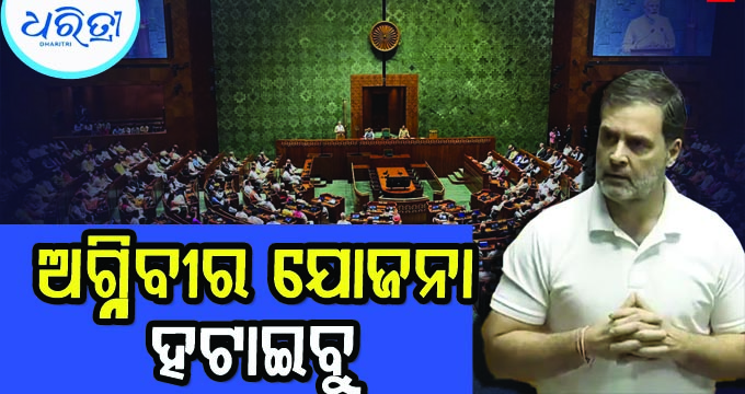 ନୂଆଦିଲ୍ଲୀ,୧।୭:ବିଭିନ୍ନ ପ୍ରସଙ୍ଗକୁ ନେଇ ଲୋକ ସଭାରେ ସୋମବାର ହଟ୍ଟଗୋଳ ଜାରି ରହିଛି। ଅଗ୍ନିବୀର ଯୋଜନା ବିଷୟରେ ଆଲୋଚନା କରି ରାହୁଲ ଗାନ୍ଧୀ କହିଛନ୍ତି, ମୁଁ ଜଣେ ଶହୀଦଙ୍କ ଘରକୁ ଯାଇଥିଲି। ମୁଁ ତାଙ୍କୁ ଶହୀଦ ବୋଲି କହୁଛି, କିନ୍ତୁ ଏହି ସରକାର ତାଙ୍କୁ ଅଗ୍ନିବୀର ବୋଲି କହୁଛନ୍ତି। ଯଦି ଶହୀଦ ହୁଅନ୍ତି ତେବେ ଅଗ୍ନିବୀରଙ୍କ ପରିବାର ପେନସନ ପାଇବେ ନାହିଁ। ଏହାକୁ ବ୍ୟବହାର କରି ଫିଙ୍ଗି ଦିଆଯିବ। ଅଗ୍ନିବୀର ୬ ବର୍ଷ ପାଇଁ ତାଲିମ ପାଆନ୍ତି। ଅନ୍ୟପକ୍ଷରେ ଚାଇନାର ସୈନିକମାନେ ପାଞ୍ଚ ବର୍ଷ ପାଇଁ ତାଲିମ ପାଆନ୍ତି।