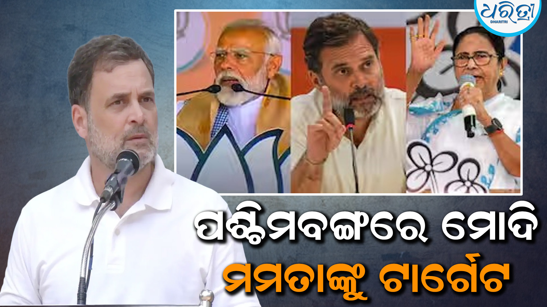 କୋଲକାତା,୨୫ା୪: ପଶ୍ଚିମବଙ୍ଗରେ ଏକ ନିର୍ୱାଚନୀ ସଭାରେ ବିରୋଧୀଦଳ ନେତା ରାହୁଲ ଗାନ୍ଧୀ ପ୍ରଧାନମନ୍ତ୍ରୀ ନରେନ୍ଦ୍ର ମୋଦି ଏବଂ ମୁଖ୍ୟମନ୍ତ୍ରୀ ମମତା ବାନାର୍ଜୀଙ୍କୁ ଟାର୍ଗେଟ କରିଛନ୍ତି। ମୋଦି ଏବଂ ମମତା କ୍ଷମତାଲୋଭୀ ବୋଲି ରାହୁଲ କହିଛନ୍ତି।