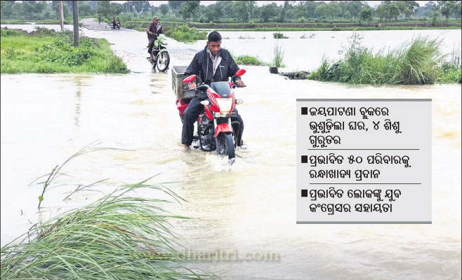ଭବାନୀପାଟଣା,୩।୮(ଉତ୍ତମ କୁମାର ଦାଶ): ବଙ୍ଗୋପସାଗରରେ ସୃଷ୍ଟି ଲଘୁଚାପ ଯୋଗୁ କଳାହାଣ୍ଡି ଜିଲାରେ ଗତ ୩ ଦିନ ହେଲା ବର୍ଷା ଜାରି ରହିଛି। ଜୟପାଟଣା ବ୍ଲକ ବିମଳା ଗଁାର ଲକ୍ଷ୍ମଣ ନାଏକଙ୍କ ହଠାତ୍ ଘର ଭୁଶୁଡିଯିବାରୁ ୪ ଝିଅପୁଅ ଗୁରୁତର ଆହତ ହୋଇଛନ୍ତି। ସ୍ଥାନୀୟ ଲୋକେ ସେମାନଙ୍କୁ ଉଦ୍ଧାର କରି ସ୍ଥାନୀୟ ଜୟପାଟଣା ଗୋଷ୍ଠୀ ସ୍ବାସ୍ଥ୍ୟକେନ୍ଦ୍ରରେ ଭର୍ତ୍ତି କରିଥିଲେ। ସେଥିମଧ୍ୟରୁ ୧୦ ବର୍ଷର ପୁଅ ତୁଷାର ନାଏକଙ୍କ ଅବସ୍ଥା ଗୁରୁତର ହେବାରୁ ତାଙ୍କୁ ଭବାନୀପାଟଣାସ୍ଥିତ ଜିଲା ମୁଖ୍ୟ ଚିକିତ୍ସାଳୟକୁ ସ୍ଥାନାନ୍ତର କରାଯାଇଥିବା ଜଣାପଡିଛି। ଲକ୍ଷ୍ମଣ ଘରେ ନ ଥିବାବେଳେ ଏହି ଅଘଟଣ ହୋଇଥିଲା। ଘର ଭିତରେ ଲକ୍ଷ୍ମଣଙ୍କ ସ୍ତ୍ରୀ ଓ ୫ଝିଅ ପୁଅ ରହିଥିଲେ। ଖବର ପାଇ ଘଟଣାସ୍ଥଳରେ ସ୍ଥାନୀୟ ପ୍ରଶାସନିକ ଅଧିକାରୀ ପହଞ୍ଚତ୍ ତଦନ୍ତ କରି ଫେରିଛନ୍ତି। ସେହିପରି ବିଶେଷ କରି ଜିଲା ସଦରମହକୁମା ଭବାନୀପାଟଣା ସହରରେ ବର୍ଷା ବିପତ୍ାତ ଯୋଗୁ ସ୍ଥାନୀୟ ଲୋକେ ନାହଁି ନ ଥିବା ଅସୁବିଧାର ସମ୍ମୁଖୀନ ହୋଇଛନ୍ତି। ବର୍ଷା ଯୋଗୁ ସହରର ଅନେକ ଲୋକଙ୍କ ଘର ଭାଙ୍ଗି ଯାଇଥିବାବେଳେ ଘରେ ପାଣି ପଶିଯିବା ସହ ପଡାକୁ ଯାଇଥିବା ରାସ୍ତା ସାରା ମଧ୍ୟ ପାଣି ମୟ ହୋଇଥିବା ଦେଖିବାକୁ ମିଳିଛି। ଭବାନୀପାଟଣା ସହରର ୧୯ ନଂ ୱାର୍ଡ ମଦନମୋହନ ପଡା, ୧୭ ନଂ ୱାର୍ଡ ଓ ୧୮ ନଂ ୱାର୍ଡ ହଲିଆପଡା, ଗୋଦାମ ପଡାବାସୀ ବିଶେଷ କ୍ଷତିଗ୍ରସ୍ତ ହୋଇଛନ୍ତି। ଏଠାକାର ଚାରିଆଡେ ପାଣି ହୋଇଥିବାବେଳେ ମାଟିଘରଗୁଡିକ ଭାଙ୍ଗିଯାଇଛି। ଲୋକଙ୍କ ଘରେ ପାଣି ପଶିଯିବାରୁ ତାଙ୍କ ଚୁଲି ମଧ୍ୟ ବନ୍ଦ ହୋଇଯାଇଛି। ଡ୍ରେନେଜ ବ୍ୟବସ୍ଥା ଫେଲ ଯୋଗୁ ଏପରି ଅସୁବିଧା ହୋଇଛି। ସ୍ଥାନୀୟ ପୌରପାଳିକ ପକ୍ଷରୁ ପ୍ରଭାବିତ ୫୦ ପରିବାରର ୧୮୦ ଲୋକଙ୍କୁ ମନ୍ଦାରବଗିଚା (ମଝିପଡା) ସ୍କୁଲରେ ରଖାଯାଇ ରନ୍ଧାଖାଦ୍ୟ ଦିଆଯାଉଛି। ବୁଧବାର ପଡାର କ୍ଷତିଗ୍ରସ୍ତ ଲୋକଙ୍କ ଘରକୁ ଯାଇ ସମବେଦନା ଜଣାଇଛନ୍ତି ଯୁବ କଂଗ୍ରେସ ଟିମ୍। ତୁରନ୍ତ ପ୍ରଭାବିତ ଲୋକଙ୍କ ସମସ୍ୟା ସମାଧାନ କରିବା ପାଇଁ ଜିଲା ପ୍ରଶାସନ ଓ ପୌରପାଳିକାଙ୍କୁ ସେମାନେ ଅନୁରୋଧ କରିଛନ୍ତି। ପରେ ପ୍ରଭାବିତ ଲୋକଙ୍କୁ ଶୁଖିଲା ଖାଦ୍ୟ ମଧ୍ୟ ବଣ୍ଟନ କରିଥିଲେ। ଏହି ସମୟରେ ଜିଲା ଯୁବ କଂଗ୍ରେସ ସଭାପତି ମହମ୍ବଦ ସାହେବ, ରାଜ୍ୟ ସାଧାରଣ ସମ୍ପାଦିକା ମନ୍ଦାକିନୀ ବାଣୁଆ, ଜିଲା ଛାତ୍ର କଂଗ୍ରେସ ସଭାପତି ସୁଶାନ୍ତ ପ୍ରଧାନୀ, ପୂର୍ବତନ ଜିଲା ଯୁବ କଂଗ୍ରେସ ସଭାପତି ତ୍ରିଲୋଚନ ପାଣିଗ୍ରାହୀ, ଜିଲା ଉପସଭାପତି ପରମାନନ୍ଦ ମାଝି ପ୍ରମୁଖ ଉପସ୍ଥିତ ଥିଲେ। ସେହିପରି ଜୁନାଗଡ ହାତୀନଦୀରୁ ଆଟିଗଁାକୁ ଯାଉଥିବା ପିଡବ୍ଲୁଡି ରାସ୍ତାର ଚିଚୈଗୁଡା ନିକଟ ଥିବା ନାଳ ଉପରେ ୪ ଫୁଟ୍ ବର୍ଷା ପାଣି ପ୍ରବାହିତ ହେଉଛି। ଯାହାଦ୍ୱାରା ଏହି ରାସ୍ତାରେ ଯାତାୟାତ ବାଧାପପ୍ତ ହୋଇଛି। ସ୍ଥାନୀୟ ଲୋକେ ବୁଲି ଚିଚୈଗୁଡା ଛକ ମୁଖ୍ୟ ଜାତୀୟ ରାଜପଥ ସଡକ ଦେଇ ଏବେ ଜୁନାଗଡ, ଭବାନୀପାଟଣାକୁ ଯାତାୟାତ କରୁଛନ୍ତି। ଅନ୍ୟପକ୍ଷରେ କିଛି ଲୋକ ନାଳ ଉପରେ ପାଣି ଚାଲୁଥିଲେ ମଧ୍ୟ ବିପଦସଙ୍କୁଳ ଭାବେ ଯାତାୟାତ କରୁଥିବା ଦେଖିବାକୁ ମିଳିଛି।