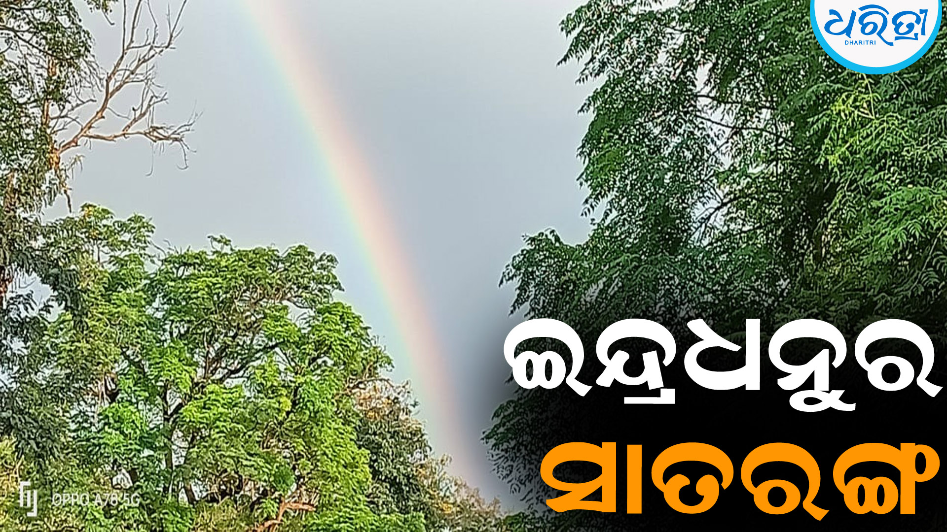 କୋରାପୁଟ,୩୦।୧୦(ଅମିତାଭ ବେହେରା): ଗୁରୁବାର ଅପରାହ୍ନରେ କୋରାପୁଟ ଆକାଶରେ ଇନ୍ଦ୍ରଧନୁ ଦେଖାଯାଇଛି। ଗୁରୁବାର ଅପରାହ୍ନ ୫ଟା ସମୟରେ କୋରାପୁଟ ଭବାନୀନଗରସ୍ଥିତ ପୂର୍ବ ଆକାଶରେ ଏହା ଦେଖିବାକୁ ମିଳିଛି। ଅପରାହ୍ନରେ ହଠାତ ଝିପିଝିପି ବର୍ଷା ପରେ ଏହା ଦେଖିବାକୁ ମିଳିଛି। ଇନ୍ଦ୍ରଧନୁର ସାତରଙ୍ଗ ଦେଖିବାକୁ ରାସ୍ତାରେ ଯାଉଥିବା ଯାତ୍ରୀ କିଛି ସମୟ ପାଇଁ ସେଠାରେ ଅଟକି ରହି ଏହାର ଉପଭୋଗ କରିଥିଲେ।