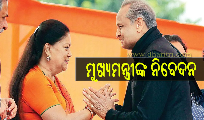 ଗେହଲଟ କହିଛନ୍ତି, ବସୁନ୍ଧରା ରାଜେଙ୍କୁ ନେଇ ଭାଜପାର ଆଭିମୁଖ୍ୟ ହେଉଛି ସେମାନଙ୍କର ଆଭ୍ୟନ୍ତରୀଣ ବିଷୟ କିନ୍ତୁ ମୁଁ କହିବାକୁ ଚାହେଁ ଯେ ଦୟାକରି ମୋ ପାଇଁ ବସୁନ୍ଧରାଙ୍କୁ ଦଣ୍ଡ ଦିଅନ୍ତୁ ନାହିଁ।