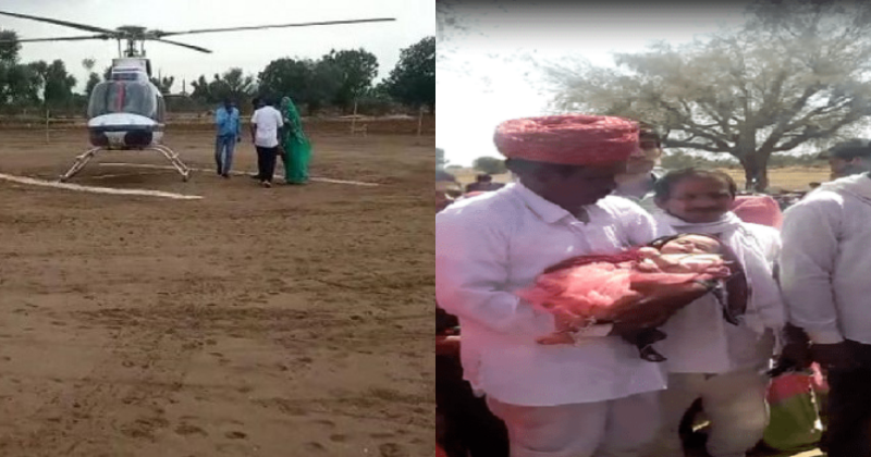 ନାଗପୁର,୨୩।୪: ରାଜସ୍ଥାନର ନାଗପୁର ଜିଲାରେ ଜଣେ ବ୍ୟକ୍ତି ନିଜ ନବଜାତ କନ୍ୟାକୁ ଘରକୁ ଆଣିବା ପାଇଁ ହେଲିକପ୍ଟର ବ୍ୟବହାର କରିଛନ୍ତି। ହନୁମାନ ପ୍ରଜାପତଙ୍କ ପତ୍ନୀ ଚୁକି ଦେବୀ ଗତ ୩ ତାରିଖରେ ନାଗପୁର ଜିଲା ହସ୍ପିଟାଲରେ ଶିଶୁକନ୍ୟା(ରିୟା)କୁ ଜନ୍ମ ଦେଇଥିଲେ। ସେଠାରୁ ଶିଶୁ କନ୍ୟାଙ୍କ ସହ ନିଜ ବାପ ଘର(ହର୍ସୋଲାଭ ଗାଁ)କୁ ଚାଲି ଯାଇଥିଲେ ଚୁକି।