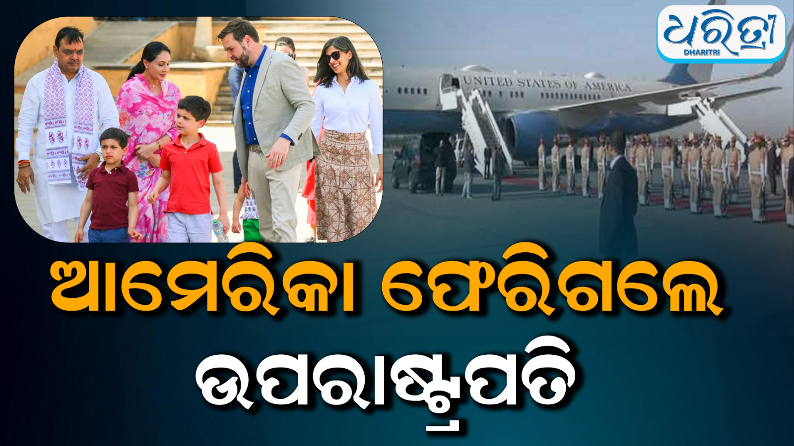 ନୂଆଦିଲ୍ଲୀ,୨୪।୪: ଆମେରିକୀୟ ଉପ ରାଷ୍ଟ୍ରପତି ଜେଡି ଭେନ୍ସ ତାଙ୍କ ପରିବାର ସହ ଚାରି ଦିନିଆ ଭାରତ ଗସ୍ତ ପରେ ଗୁରୁବାର ସକାଳେ ଓ୍ଵାଶିଂଟନ ଅଭିମୁଖେ ଯାତ୍ରା କରିଛନ୍ତି। ଜୟପୁର ଆନ୍ତର୍ଜାତୀୟ ବିମାନବନ୍ଦରରୁ ସେ ଏକ ବିଶେଷ ବିମାନରେ ଓ୍ଵାଶିଂଟନ ପାଇଁ ଉଡ଼ାଣ ଭରିଛନ୍ତି। ସୋମବାର ରାତିରେ ଭେନ୍ସ ଦିଲ୍ଲୀରୁ ଜୟପୁର ଆସିଥିଲେ। ପାହାଲଗାମ ଆତଙ୍କବାଦୀ ଆକ୍ରମଣ ପରେ ଜୟପୁରରେ ତାଙ୍କର ସିଟି ପ୍ୟାଲେସ ଭ୍ରମଣ କାର୍ଯ୍ୟକ୍ରମ ବାତିଲ ହୋଇଥିଲା।