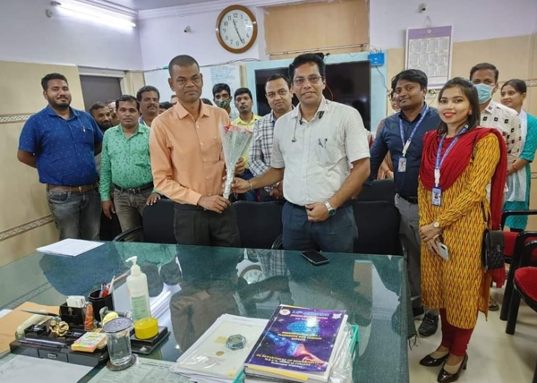 କାର୍ଯ୍ୟାଳୟର ପ୍ରତିଷ୍ଠାନ ଅଧିକାରୀ ମନୋଜ କୁମାର ଖାଡଙ୍ଗାଙ୍କ ତତ୍ତ୍ୱାବଧାନରେ ତାଙ୍କୁ ସମ୍ବର୍ଦ୍ଧନା କରାଯାଇଥିଲା। ଏଥିରେ ଏମ୍କେସିଜି ଅତିରିକ୍ତ ଅଧିକ୍ଷକ ଡ଼ କିରଣ କୁମାର ପଟ୍ଟନାୟକଙ୍କ ସମେତ ସମସ୍ତ କର୍ମଚାରୀ ପ୍ରଶାସନିକ ଅଧିକାରୀ ମିଞ୍ଜଙ୍କୁ ପୁଷ୍ପଗୁଚ୍ଛ ଦେଇ ସ୍ବାଗତ କରିଥିଲେ। ଏମ୍କେସିଜିରେ ପୂର୍ବରୁ ଥିବା ପ୍ରଶାସନିକ ଅଧିକାରୀ ସୁଦାମ ଚରଣ ମଣ୍ଡଳଙ୍କୁ ଶିଳ୍ପ ନିର୍ଦ୍ଦେଶାଳୟର ସହକାରୀ ନିର୍ଦ୍ଦେଶକ ଭାବେ ଗତ ମେ’ ୨୪ରେ ବଦଳି କରାଯାଇଥିଲା। ସେହି ଦିନଠାରୁ ଏମ୍କେସିଜିରେ ଏହି ପଦବୀ ଖାଲି ରହିଥିଲା। ବର୍ତ୍ତମାନ ପ୍ରଶାସନିକ ଅଧିକାରୀ ଭାବେ ରାଜେନ୍ଦ୍ର ଦାୟିତ୍ୱ ଗ୍ରହଣ କରିଛନ୍ତି।