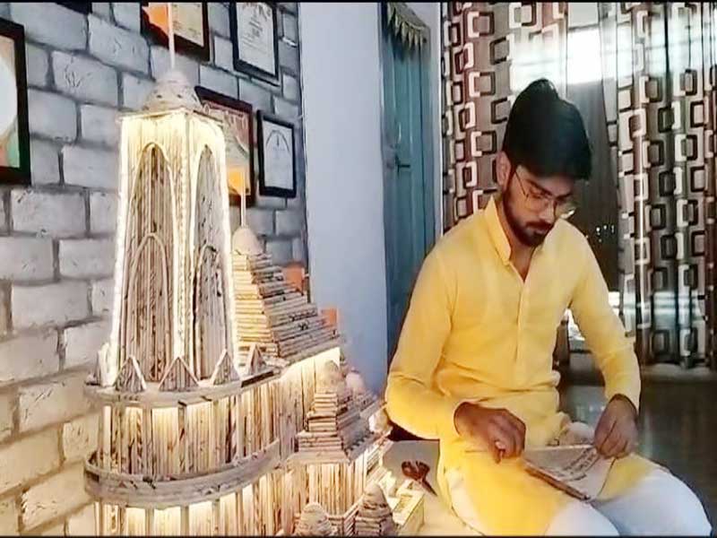 ପ୍ରୟାଗରାଜ,୮।୧ : ଉତ୍ତରପ୍ରଦେଶର ମୁଜାଫରନଗରରେ ରହୁଥିବା ବି.କମ ଛାତ୍ର ଆବର୍ଜନାରୁ ରାମ ମନ୍ଦିରର ଏକ ସୁନ୍ଦର ମଡେଲ ତିଆରି କରିଛନ୍ତି, ଯେଉଁଥିପାଇଁ ସେ ୮ ହଜାର କାଠି ଏବଂ ଫେଭିକଲ ବ୍ୟବହାର କରିଥିଲେ। ଗାନ୍ଧୀ କଲୋନୀର ବାସିନ୍ଦା ୧୯ ବର୍ଷ ବୟସ୍କା ତୁଷାର କହିଛନ୍ତି ଏହି ମଡେଲ ତିଆରି କରିବାକୁ ତାଙ୍କୁ ୪ ମାସ ସମୟ ଲାଗିଛି। କରୋନା ଅବଧି ସମୟରେ କଲେଜ ବନ୍ଦ ଥିବାବେଳେ ସେ ତାଙ୍କର ଖାଲି ସମୟରେ ମଡେଲ ତିଆରି କରିବା ଶିଖିଥିଲେ।