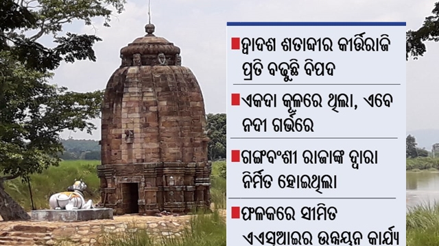 କାମାକ୍ଷାନଗର, ୨୩।୭ (ସୁଧୀର କୁମାର ପରିଡ଼ା): ଇତିହାସର ସାଉଁଟା କାହାଣୀ କୁହେ ଐତିହାସିକ କୀର୍ତ୍ତିରାଜି। ଏହାକୁ ସଂରକ୍ଷଣ କରି ପର୍ଯ୍ୟଟନର ବିକାଶ କଥା ଚିନ୍ତା କରୁଛନ୍ତି ସରକାର। ଏଥିଲାଗି ଅନେକ ଯୋଜନା। ଖର୍ଚ୍ଚ ହେଉଛି କୋଟି କୋଟି ଟଙ୍କା। ହେଲେ ଢେଙ୍କାନାଳ ଜିଲା କାମାକ୍ଷାନଗର ବ୍ଲକରେ ଥିବା ଗଙ୍ଗବଂଶୀୟ ଭାସ୍କର୍ଯ୍ୟକଳାର ନିଦର୍ଶନ କପିଳେଶ୍ୱର ମନ୍ଦିର ପ୍ରତି ସତେ ଯେମିତି କାହାରି ନିଘା ନାହିଁ। ରକ୍ଷଣାବେକ୍ଷଣ ଅଭାବରୁ ଏହି ପୁରାତନ ଶୈବପୀଠ ଏବେ ରାମିଆଳ ନଦୀ ଗର୍ଭରେ। ବଢ଼ିପାଣି ମାଡ଼ରେ ନିଜ ଅସ୍ତିତ୍ୱ ବଞ୍ଚାଇବାକୁ ସଂଘର୍ଷ କରୁଥିବା ଏହି ପ୍ରାଚୀନ ମନ୍ଦିରର ସୁରକ୍ଷାକୁ ହେୟଜ୍ଞାନ କଲେ ଗଙ୍ଗବଂଶୀୟ ରାଜାଙ୍କ ସନ୍ତକ କେବଳ ଇତିହାସ ପୃଷ୍ଠା ଭିତରେ ସୀମିତ ହୋଇ ରହିଯିବ ବୋଲି ଆଶଙ୍କା ବ୍ୟକ୍ତ କରିଛନ୍ତି ଗ୍ରାମବାସୀ।