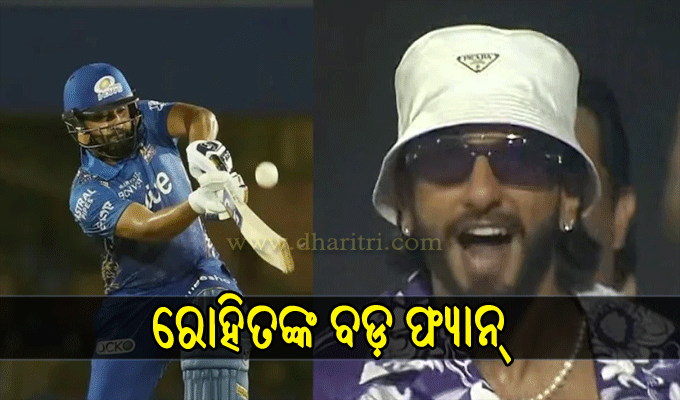 ମୁମ୍ବାଇ,୬।୫: ଇଣ୍ଡିଆନ ପ୍ରିମିୟର ଲିଗ୍(ଆଇପିଏଲ୍) ୨୦୨୨ର ୫୧ତମ ମୁକାବିଲାରେ ମୁମ୍ବାଇ ଇଣ୍ଡିଆନ୍ସ ଏବଂ ଗୁଜରାଟ ଟାଇଟନ୍ସ ମୁହାଁମୁହିଁ ହେଉଛନ୍ତି। ଏହି ହାଇଭୋଲ୍ଟେଜ୍ ମୁକାବିଲାରେ ଗୁଜରାଟ ଅଧିନାୟକ ହାର୍ଦ୍ଦିକ ପାଣ୍ଡ୍ୟା ଟସ୍ ଜିତି ମୁମ୍ବାଇକୁ ବ୍ୟାଟିଂ ଲାଗି ଆମନ୍ତ୍ରିତ କରିଥିଲେ। ଲଗାତାର ଭାବେ ମ୍ୟାଚ୍ ହାରୁଥିବା ମୁମ୍ବାଇ ପକ୍ଷରୁ ଅଧିନାୟକ ରୋହିତ ଶର୍ମା ଭଲ ଆରମ୍ଭ କରିଥିଲେ। ତେବେ ଏହି ମ୍ୟାଚ୍ ଦେଖିବାକୁ ଷ୍ଟାଡିୟମରେ ଉପସ୍ଥିତ ଥିଲେ ବଲିଉଡ ଅଭିନେତା ରଣବୀର ସିଂହ। ଅଭିନେତା ରୋହିତଙ୍କର ବଡ଼ ପ୍ରଶଂସକ। ଏଣୁ ରୋହିତ ବ୍ୟାଟିଂ କରୁଥିବା ସମୟରେ ରଣବୀର ଖୁସିରେ ସେଲିବ୍ରେଟ୍ କରୁଥିବା ଦେଖାଯାଇଛି।