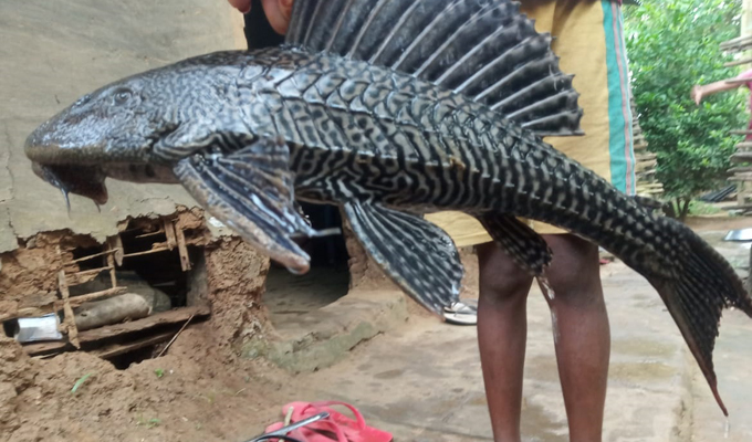 ହରଭଙ୍ଗା,୩୦।୧୦(ଡି.ଏନ.ଏ.)-ବୌଦ୍ଧ ଜିଲା ହରଭଙ୍ଗା ବ୍ଲକ ସଙ୍କୁଲେଇ ପଞ୍ଚାୟତ ଅନ୍ତର୍ଗତ ପାଣିଘରା ଗ୍ରାମର ମତ୍ସ୍ୟଜୀବୀମାନେ ଗୁରୁବାର ଏକ ବିରଳ ମାଛ ମହାନଦୀରୁ ଉଦ୍ଧାର କରିଛନ୍ତି। ଏହାର ଓଜନ ପ୍ରାୟ ୧ କେ.ଜି ହେବ। ମାଛଟିର ଦେହରେ କଳା, ଓ ଧଳା ରଙ୍ଗର ଦାଗ ରହିଛି। ସେହିପରି ତଳ ପଟେ ମୁହଁ ରହିଛି। ବିରଳ ମାଛ ଉଦ୍ଧାର ହେବା ଘଟଣା ପ୍ରଘଟ ହେବା ପରେ ମାଛକୁ ଦେଖିବା ପାଇଁ ଆଖପାଖ ଅଞ୍ଚଳର ଶତାଧିକ ଲୋକଙ୍କ ଭିଡ ଜମିବାରେ ଲାଗିଛି।