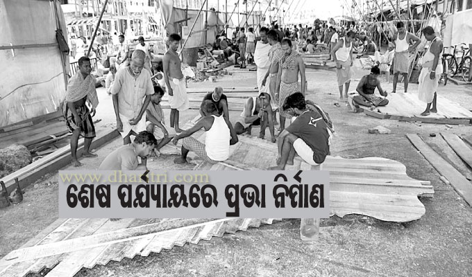 ପୁରୀ ଅଫିସ, ୨୩ା୬: ମହାପ୍ରଭୁଙ୍କ ବିଶ୍ୱପ୍ରସିଦ୍ଧ ଘୋଷଯାତ୍ରା ପାଇଁ ଅସ୍ଥାୟୀ ରଥଖଳାରେ ରଥ ନିର୍ମାଣ କାର୍ଯ୍ୟ ଜୋରସୋର୍ରେ ଆଗେଇ ଚାଲିଛି। ତିନିରଥର ଖପୁରି ସମେତ ପାରାଭାଡ଼ିକୁ ମିଶାଇ ତେର ପରସ୍ତ ପୋଟଳ ସେଟିଂ ଶେଷ ହୋଇଥିବା ବେଳେ ବୁଧବାର ତିନିରଥର ପୋଟଳ ତଳକୁ ୪ଟି ଲେଖାଏ ଋଷିପଟା ସେଟିଂ ହୋଇଛି। ତିନିରଥର ବେଦି ପଛ ଭାଗରେ ପଟାବାଡ଼ିଆ ପରେ ସମ୍ମୁଖ ଭାଗରେ ପଟାବାଡ଼ିଆ ସରିବା ସହ ରଥ ଦକ୍ଷିଣ ପାଶର୍ବ ଏବଂ ବାମ ପାଶର୍ବରେ ପଟା ପଡ଼ିବା ଶେଷ ପର୍ଯ୍ୟାୟରେ ପହଞ୍ଚତ୍ଛି। ତିନିରଥର ୪ଟି ଲେଖାଏ ୧୨ଟି ଦୁଆରବେଢ଼ା ନିର୍ମାଣ ସରିବା ପରେ ସେଗୁଡ଼ିକରେ ପ୍ରାଇମର ଦିଆଯାଇ ଚିତ୍ରକାରଙ୍କ ଦ୍ୱାରା ଚିତ୍ର ଅଙ୍କନ ଚାଲିଛି। ତିନିରଥର ପ୍ରଭା ନିର୍ମାଣ ଶେଷ ପର୍ଯ୍ୟାୟରେ ପହଞ୍ଚତ୍ଛି। ପ୍ରଭାଫ୍ରେମରେ ପଟାବାଡ଼ିଆ ପରେ ବାଙ୍କ ପଡ଼ି ରୂପ ଖୋଦେଇ ପଟା ସେଟିଙ୍ଗ ହୋଇଛି। ରୂପକାର ସେବକମାନେ ତିନିରଥର ଶେଷ ୩ଟି ନାଟଗୋଡ଼ର ରୂପ ଖୋଦେଇରେ ଶେଷ ସ୍ପର୍ଶ ଦେଉଛନ୍ତି। ଚିତ୍ରକର ସେବକମାନେ ଦୁଆର ବେଢ଼ାରେ ଚିତ୍ର କରିବା ସହ ରଥ ପାଶର୍ବ ଦେବଦେବୀ, ନାଟଗୋଡ଼, ଓଲଟ ଶୁଆ, ସଖୀ ଆଦିରେ ରଙ୍ଗ ଦେଉଛନ୍ତି। ଗୁଜ ଓ ପଟାଗୁଜଗୁଡ଼ିକରେ ଖୋଦେଇ, ରୂପରେ ଚିତ୍ର ଅଙ୍କନ କରୁଛନ୍ତି। ଶ୍ରୀମନ୍ଦିର କାର୍ଯ୍ୟାଳୟର ଉପର ପ୍ରକୋଷ୍ଠରେ ୧୭ଜଣ ଦରଜି ସେବକ ବୁଧବାର ସୁଦ୍ଧା ତିନିରଥର କନା କଟିଂ ସାରି ଦୁଆର ବେଢ଼ା ପାଇଁ କନା କଟିଂ ସହ ସିଲଭର ଲେସ ଫିଟିଂ ଓ ଚନ୍ଦ୍ରଶାଳୀରେ ଫୁଲ ପକା କାମ ଶେଷ କରିଛନ୍ତି। ଦୋଳବେଦିସ୍ଥିତ ଅସ୍ଥାୟୀ କମାରଶାଳରେ ଓଝା ସେବକମାନେ ପ୍ରତି ଦୁଆରବେଢ଼ା ପାଇଁ ୧୧ଟି ଲେଖାଏ ମୋଟ ୧୩୨ଟି କଣ୍ଟା ନିର୍ମାଣ ସାରି ଜଗତ ପୃଷ୍ଠ ଶେଣୀ କଣ୍ଟା, ସିଂହାସନ କଣ୍ଟା ଏବଂ ସିଂହାସନ ଗୁଣ୍ଠି କଣ୍ଟା ନିର୍ମାଣ ଜାରି ରଖିଛନ୍ତି।