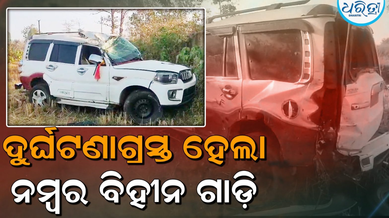 ବିଳମ୍ବିତ ରାତିରେ ଦୁର୍ଘଟଣାଗ୍ରସ୍ତ ହେଲା ନମ୍ବର ବିହୀନ ସ୍କର୍ପିଓ ଗାଡ଼ି, ଘଟଣାସ୍ଥଳରେ ନଥିଲେ କେହି…