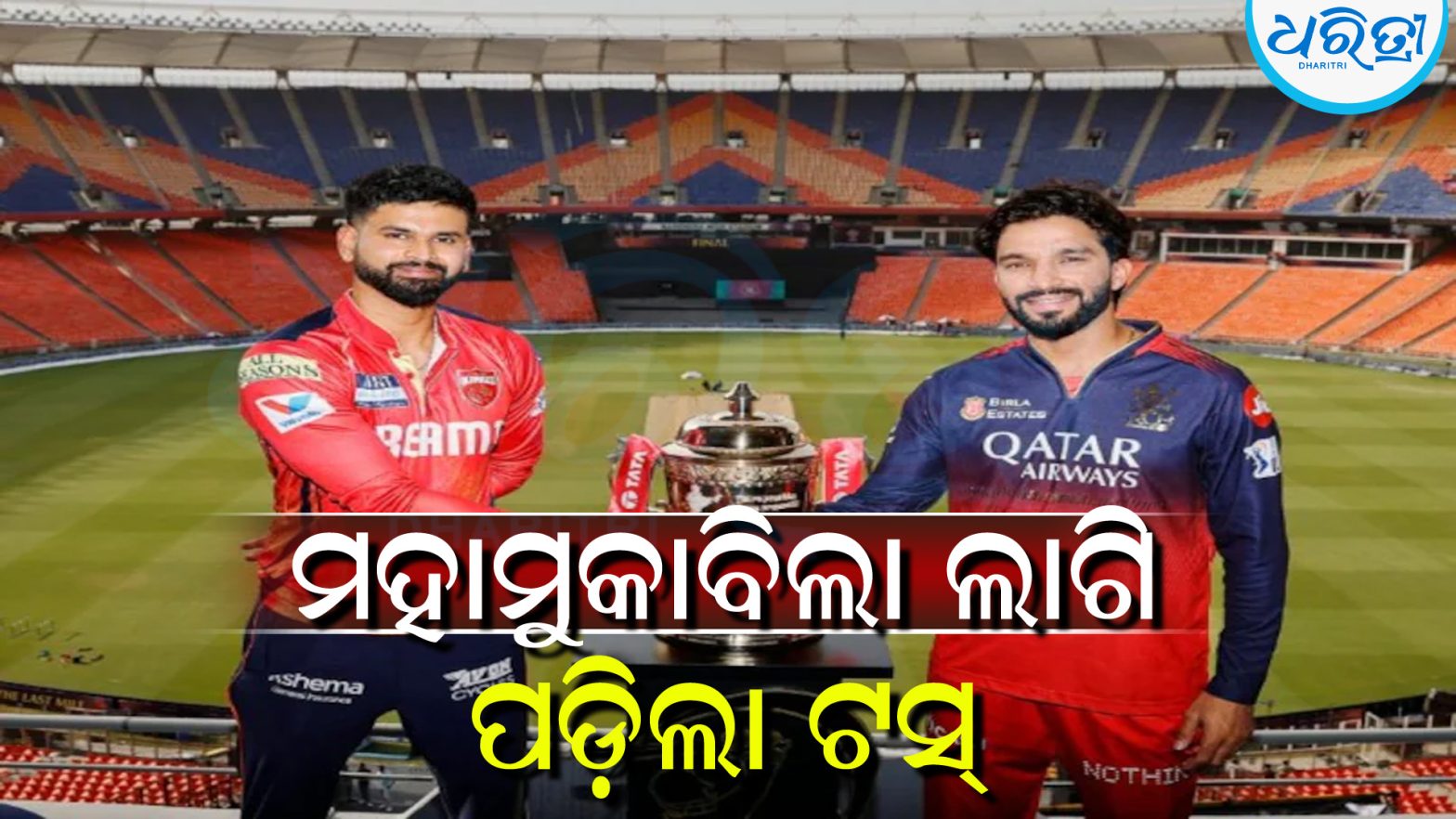 ଅହମ୍ମଦାବାଦ,୩।୬: ଆଇପିଏଲ୍ ୨୦୨୫ର ଫାଇନାଲ ମୁକାବିଲା ରୟାଲ ଚ୍ୟାଲେଞ୍ଜର୍ସ ବାଙ୍ଗାଲୋର ଏବଂ ପଞ୍ଜାବ କିଙ୍ଗ୍ସ ମଧ୍ୟରେ ମଙ୍ଗଳବାର ଖେଳାଯାଉଛି। ଏଥିରେ ପଞ୍ଜାବ ଟିମ୍ ଟସ୍ ଜିତି ପ୍ରଥମେ ବୋଲିଂ ନିଷ୍ପତ୍ତି ନେଇଛି। ଅର୍ଥାତ ବାଙ୍ଗାଲୋର ଟିମ୍ ପ୍ରଥମେ ବ୍ୟାଟିଂ କରିବ। ମ୍ୟାଚ୍ ଲାଗି ପଞ୍ଜାବ ଟିମ୍ରେ କୌଣସି ପରିବର୍ତ୍ତନ ହୋଇନାହିଁ। ତେବେ କ୍ୱାଲିଫାୟାର ମୁକାବିଲାରେ ପଞ୍ଜାବ ଏହି ମଇଦାନରେ ପ୍ରଥମେ ଟସ୍ ଜିତି ବୋଲିଂ କରିଥିଲା।