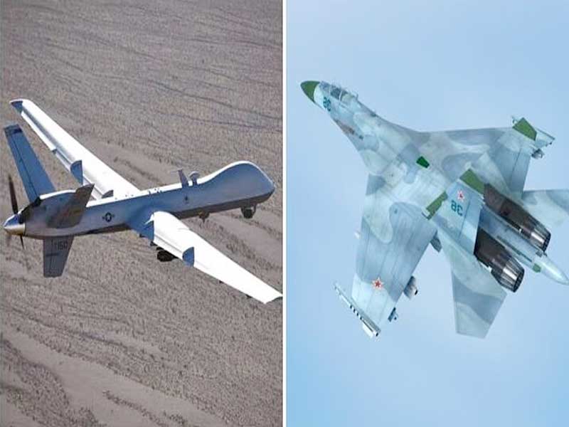 ଆମେରିକାର ପ୍ରତିରକ୍ଷା ବିଭାଗର ପେଣ୍ଟାଗନ୍ର ପ୍ରେସ ସେକ୍ରେଟାରୀ ପ୍ୟାଟ ରାଇଡର୍ କହିଛନ୍ତି ଯେ ଦୁଇଟି ରୁଷିଆ ଏସୟୁ-୨୭ ବିମାନ ଆମେରିକାର ବାୟୁସେନା ଗୁପ୍ତଚର, ନୀରିକ୍ଷଣ ଏବଂ ଅନୁସନ୍ଧାନକାରୀ ମାନବ ବିହୀନ ଏମ୍କ୍ୟୁ-୯ ଡ୍ରୋନକୁ ଅନୁସରଣ କରିଛି, ଯାହା କୃଷ୍ଣ ସାଗର ଉପରେ ଅନ୍ତର୍ଜାତୀୟ ଆକାଶ ମାର୍ଗରେ ଉଡୁଥିଲା। ସେ ଆହୁରି ମଧ୍ୟ କହିଛନ୍ତି ଯେ ମୁହାଁମୁହିଁ ହେବା ପୂର୍ବରୁ ପ୍ରାୟ ୩୦-୪୦ ମିନିଟ ପର୍ଯ୍ୟନ୍ତ ଏମ୍କ୍ୟୁ-୯ ସାମ୍ନାରେ ଅନେକ ଥର ଏସୟୁ-୨୭ ବିମାନ ଉଡିଥିଲା। ପରେ ଏକ ରୁଷିଆ ଜେଟ ଜାଣିଶୁଣି ଆମେରିକୀୟ ଡ୍ରୋନ ଉପରେ ଆସି ଏହାର ଇନ୍ଧନ ଡ୍ରୋନ ଉପରେ ପକାଇଥିଲା। ଘଟଣାର କିଛି ସମୟ ପରେ ଏକ ସୁଖୋଇ -୨୭ ଡ୍ରୋନକୁ ଧକ୍କା ଦେଇ ଏହାର ପ୍ରୋପେଲରକୁ କ୍ଷତି ପହଞ୍ଚାଇଥିଲା। ଡ୍ରୋନର ପଛ ଭାଗରେ ପ୍ରୋପେଲର ଲଗାଯାଇଥିଲା।