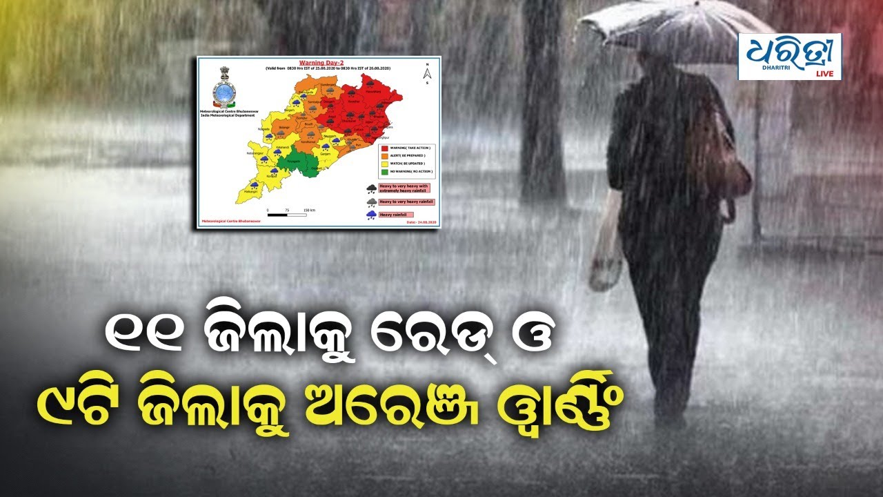 ଉତ୍ତର ବଙ୍ଗୋପସାଗରରେ ସୃଷ୍ଟି ହୋଇଥିବା ଲଘୁଚାପ ଅବପାତର ରୂପ ନେଇଛି। ଏହାର ପ୍ରଭାବରେ ପ୍ରବଳ ବର୍ଷା ହେବାର ସମ୍ଭାବନା ରହିଛି । ୧୧ଜିଲାକୁ ରେଡ୍ ଓ ୯ଟି ଜିଲାକୁ ଅରେଞ୍ଜ ୱାର୍ଣ୍ଣିଂ ଜାରି କରାଯାଇଛି। ବାଲେଶ୍ୱର, ଭଦ୍ରକ, ମୟୁରଭଂଜ,କେନ୍ଦୁଝର, ପାରାଦୀପ, ଝାରସୁଗୁଡା, ଅନୁଗୁଳ, ଦେବଗଡ଼, କଟକର ଖାଲୁଆ ଅଂଚଳରେ ପାଣି ଜମା ହେବା ସହ ବନ୍ୟା ପରିସ୍ଥିତି ସୃଷ୍ଟି ହୋଇପାରେ।