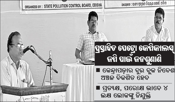 କେନ୍ଦ୍ରାପଡ଼ା ଅଫିସ/ ମହାକାଳପଡ଼ା,୩୧ା୮(ଡି.ଏନ.ଏ.): ଓଡ଼ିଶା ଶିଳ୍ପ ଭିତ୍ତିଭୂମି ଉନ୍ନୟନ ନିଗମ (ଇଡ୍କୋ) ପକ୍ଷରୁ ଜଗତ୍ସିଂହପୁର ଜିଲା ପାରାଦୀପଠାରେ ପ୍ରସ୍ତାବିତ ପ୍ରେଟ୍ରୋଲିୟମ, ରସାୟନ ଓ ପେଟ୍ରୋକେମିକାଲସ୍ ଅଞ୍ଚଳର ନିବେଶସ୍ଥଳ କେନ୍ଦ୍ରାପଡ଼ା ଜିଲା ମହାକାଳପଡ଼ା ବ୍ଲକ ଶ୍ରୀବାୟାବାବା କଲେଜରେ ଜମି ବ୍ୟାଙ୍କ ପାଇଁ ଜନଶୁଣାଣି ମଙ୍ଗଳବାର ଅନୁଷ୍ଠିତ ହୋଇଯାଇଛି। ଏଡିଏମ୍ ଦୁର୍ଗାପ୍ରସାଦ ମହାରଣାଙ୍କ ଅଧ୍ୟକ୍ଷତାରେ ଅନୁଷ୍ଠିତ ଜନଶୁଣାଣିରେ ଇଡ୍କୋ କର୍ତ୍ତୃପକ୍ଷ ପ୍ରସ୍ତାବିତ ମହାକାଳପଡ଼ା ଓ ମାର୍ଶାଘାଇ ଅଞ୍ଚଳର ୬୪ଟି ଗ୍ରାମ ବିକଷିତ ହେବ କହିଥିଲେ। ଏଥିରେ ପାରାଦୀପ ରାଜ୍ୟ ପ୍ରଦୂଷଣ ବୋର୍ଡର ଆଞ୍ଚଳିକ ଅଧିକାରୀ ପୁଷ୍କର କୁମାର ବେହେରା ଉପସ୍ଥିତ ରହି ଲୋକଙ୍କ ମତ ଶୁଣିଥିଲେ। ଇଡ୍କୋର ସିଜେଏମ୍ ଅଶୋକ ମିଶ୍ର ଜମି ଅଧିଗ୍ରହଣ ସମ୍ପର୍କରେ କହିଥିଲେ ଯେ, ପ୍ରସ୍ତାବିତ ପ୍ରକଳ୍ପ ପାଇଁ ଜଗତ୍ସିଂହପୁର ଜିଲାର ପାରାଦୀପ, ଏରସମା, କୁଜଙ୍ଗ ସହ କେନ୍ଦ୍ରାପଡ଼ା ଜିଲା ମାର୍ଶାଘାଇର ୧୨ ଓ ମହାକାଳପଡ଼ା ବ୍ଲକର ୫୨ ଗ୍ରାମରେ ଜମି ଅଧିଗ୍ରହଣ ହେବ। ଉକ୍ତ ଜମି ଅଧିଗ୍ରହଣ ପରେ ଜମି ବ୍ୟାଙ୍କରେ ରଖାଯିବ। ଏସବୁ ଜମିରେ ପ୍ରେଟ୍ରୋକେମିକାଲସ ପ୍ରକଳ୍ପ କରାଯିବ। ଏଥିସହ ଏହି ଜିଲାର ଦୁଇ ବ୍ଲକ ଅଞ୍ଚଳରେ ରାସ୍ତା, ଟ୍ରେନ ଲାଇନ, ବିଦ୍ୟୁତ, ସଂଯୋଗ ପାଣି ବ୍ୟବସ୍ଥା ଆଦି ଭିତ୍ତିଭୂମିକୁ ସଜଡା ଯିବ। ଆଗାମୀଦିନରେ ଏହି ନିବେଶସ୍ଥଳରେ ଯେଉଁମାନେ ଶିଳ୍ପ କରିବାକୁ ଆସିବେ ସେମାନଙ୍କ ପାଇଁ ଜମିର ଅଭାବ ରହିବ ନାହିଁ। ଏଥିରେ ପ୍ରତ୍ୟେକ୍ଷ ଓ ପରୋକ୍ଷ ଭାବେ ପ୍ରାୟ ୪ ଲକ୍ଷ ଲୋକଙ୍କୁ ନିଯୁକ୍ତି ମିଳିବ। ଏସବୁ ଅଞ୍ଚଳ ପାଇଁ ହୋଇଥିବା ରିପୋର୍ଟରେ ପରିବେଶ ପାଇଁ କୌଣସି କ୍ଷତି ନାହିଁ। ସରକାରୀ ଓ କେତେକ ଚାଷ ଜମି ଅଧିଗ୍ରହଣ ହେବାକୁ ଥିବା ବେଳେ ଘରବାଡି ପୂର୍ବବତ ରହିବ ବୋଲି ଇଡ୍କୋ ସିଜେଏମ୍ ମିଶ୍ର କହିଥିଲେ। ଏଥିରେ ଯୋଗଦେଇଥିବା ସ୍ଥାନୀୟ ଅଞ୍ଚଳବାସୀ ପରିବେଶ ପ୍ରଦୂଷଣକୁ ନେଇ ଉଦ୍ବେଗ ପ୍ରକାଶ କରିଥିଲେ।