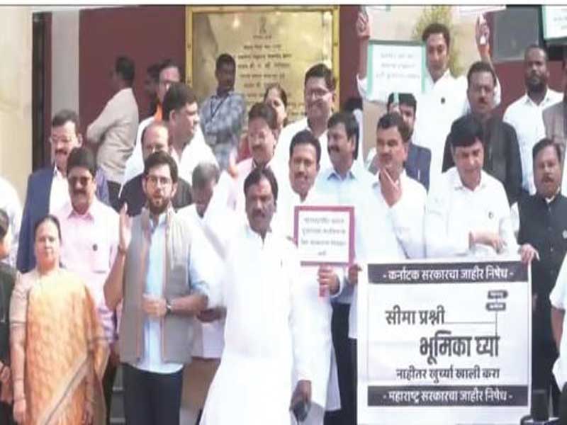 ମହାରାଷ୍ଟ୍ରର ବିରୋଧୀ ଦଳର ନେତାମାନେ ମୁଖ୍ୟମନ୍ତ୍ରୀ ଏକନାଥ ଶିନ୍ଦେ, ରାଜ୍ୟ ସରକାର ଏବଂ କର୍ନାଟକ ସରକାରଙ୍କ ବିରୋଧରେ ସ୍ଲୋଗାନ ଦେଇଛନ୍ତି। ବିରୋଧୀ ଦଳର ନେତାମାନେ ହାତରେ ପ୍ଲାକାର୍ଡ ଧରିଥିଲେ। ଏଥିରେ ସୀମା ବିବାଦର ସମାଧାନ କର କିମ୍ବା ଗାଦି ଖାଲି କରିବାକୁ ମହାରାଷ୍ଟ୍ର ସରକାରଙ୍କ ଉଦ୍ଦେଶ୍ୟରେ ଲେଖାଯାଇଥିବା ଦେଖିବାକୁ ମିଳିଥିଲା।