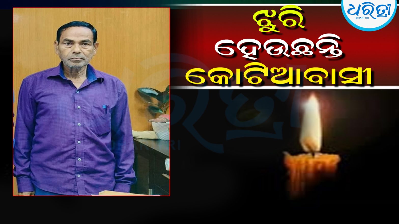 ପଟ୍ଟାଙ୍ଗ,୪।୭(ଶରତ କୁମାର ଧଳ):କୋରାପୁଟ ଜିଲ୍ଲା ପଟ୍ଟାଙ୍ଗି ବ୍ଲକ ଅନ୍ତର୍ଗତ ତଥା ପଡୋଶୀ ଆନ୍ଧ୍ର ରାଜ୍ୟ ସୀମାନ୍ତ କୋଟିଆ ପଞ୍ଚାୟତ ର ଅବସରପ୍ରାପ୍ତ ରାଜସ୍ବ ନିରୀକ୍ଷକ ଗଦାଧର ସ୍ବାଇଁଙ୍କ ଗୁରୁବାର ବିଳମ୍ବିତ ରାତିରେ ମୃତ୍ୟୁ ଘଟିଛି। ଏନେଇ ଜଣାପଡ଼ିବା ପରେ ବ୍ଲକଠାରୁ ଆରମ୍ଭ କରି ଜିଲା ପ୍ରଶାସନ ଏବଂ ଉକ୍ତ ପଞ୍ଚାୟତ କ୍ଷେତ୍ରରେ ଶୋକର ଛାୟା ଖେଳିଯାଇଛି ।