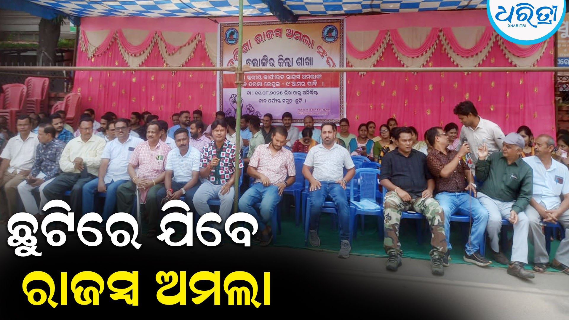ବଲାଙ୍ଗିର ୧୧।୮(ସୁଶାନ୍ତ ବାରିକ) : ବହୁ ପ୍ରତୀକ୍ଷିତ ଦଶ ଦଫା ଦାବି ପୁରଣ କରିବାରେ ରାଜ୍ୟ ସରକାରଙ୍କ ସହ ଆଲୋଚନା ବିଫଳ ହେବା ପରେ ସଂଘର ପୂର୍ବନିର୍ଦ୍ଧାରିତ ନିଷ୍ପତ୍ତି ଅନୁଯାୟୀ,୧୧ ଅଗଷ୍ଟରୁ ଅନିର୍ଦ୍ଦିଷ୍ଟ କାଳ ପର୍ଯ୍ୟନ୍ତ ରାଜ୍ୟର ସମସ୍ତ ରାଜସ୍ବ ଅମଲାମାନେ ସାମୁହିକ ଛୁଟିରେ ରହିବା ପରିପ୍ରେକ୍ଷୀରେ ଆଜି ବଲାଙ୍ଗିର ଜିଲାର ସମସ୍ତ ରାଜସ୍ବ ଅମଲା ମଧ୍ୟ ସାମୂହିକ ଛୁଟିରେ ଅଛନ୍ତି l