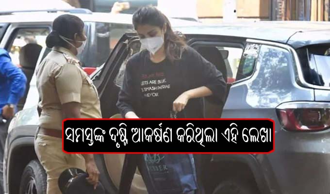 ମୁମ୍ବାଇ: ସୁଶାନ୍ତ ସିଂ ରାଜପୁତ ମୃତ୍ୟୁ ମାମଲାରେ ରିୟା ଚକ୍ରବର୍ତ୍ତୀ ଗିରଫ ହୋଇସାରିଛନ୍ତି। ଗିରଫ ପୂର୍ବରୁ ଯେତେବେଳେ ରିୟା ଏନ୍ସିବି କାର୍ଯ୍ୟାଳୟରେ ପହଞ୍ଚିଥିଲେ ସମସ୍ତଙ୍କ ନଜର ଥିଲା ତାଙ୍କ ଟି-ଶର୍ଟ ଉପରେ। କାରଣ ଏଥିରେ ଏମିତି କିଛି ଶବ୍ଦ ଲେଖାଥିଲା ଯାହା ସମସ୍ତଙ୍କ ଦୃଷ୍ଟି ଆକର୍ଷଣ କରିଥିଲା। ବର୍ତ୍ତମାନ ରିୟାଙ୍କ ଏହି ଫଟୋ ସୋସିଆଲ ମିଡିଆରେ ଖୁବ୍ ଭାଇରାଲ ହେବାରେ ଲାଗିଛି।
