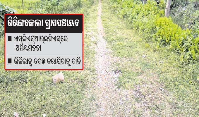 ଲେଫ୍ରିପଡ଼ା,୭।୧୦(ଡି.ଏନ.ଏ.): ସରକାର ଉନ୍ନତିକରଣ ସକାଶେ ଏମ୍ଜିଏନ୍ଆର୍ଇଜିଏସ୍ ଯୋଜନାରେ କୋଟି କୋଟି ଟଙ୍କା ଖର୍ଚ୍ଚ କରି ଚାଲିଛନ୍ତି। କିନ୍ତୁ ଏହି ଯୋଜନାରେ ଅନିୟମିତତା ଦେଖାଦେଇଛି ସୁନ୍ଦରଗଡ଼ ଜିଲା ଲେଫ୍ରିପଡ଼ା ବ୍ଲକ ଅଧୀନରେ। ବ୍ଲକର ଗିରିଙ୍ଗକେଲା ଆଦର୍ଶ ପଞ୍ଚାୟତରେ ଏମ୍ଜିଏନ୍ଆର୍ଇଜିଏସ୍ କାର୍ଯ୍ୟରେ ବିନା କାମରେ ଟଙ୍କା ଉଠାଣ କରାଯାଇଥିବା ଘଟଣା ସାମ୍ନାକୁ ଆସିଛି। ଏଥିପାଇଁ ଗ୍ରାମବାସୀ ଭିଜିଲାନ୍ସ ତଦନ୍ତ କରିବାକୁ ଦାବି କରିଛନ୍ତି।