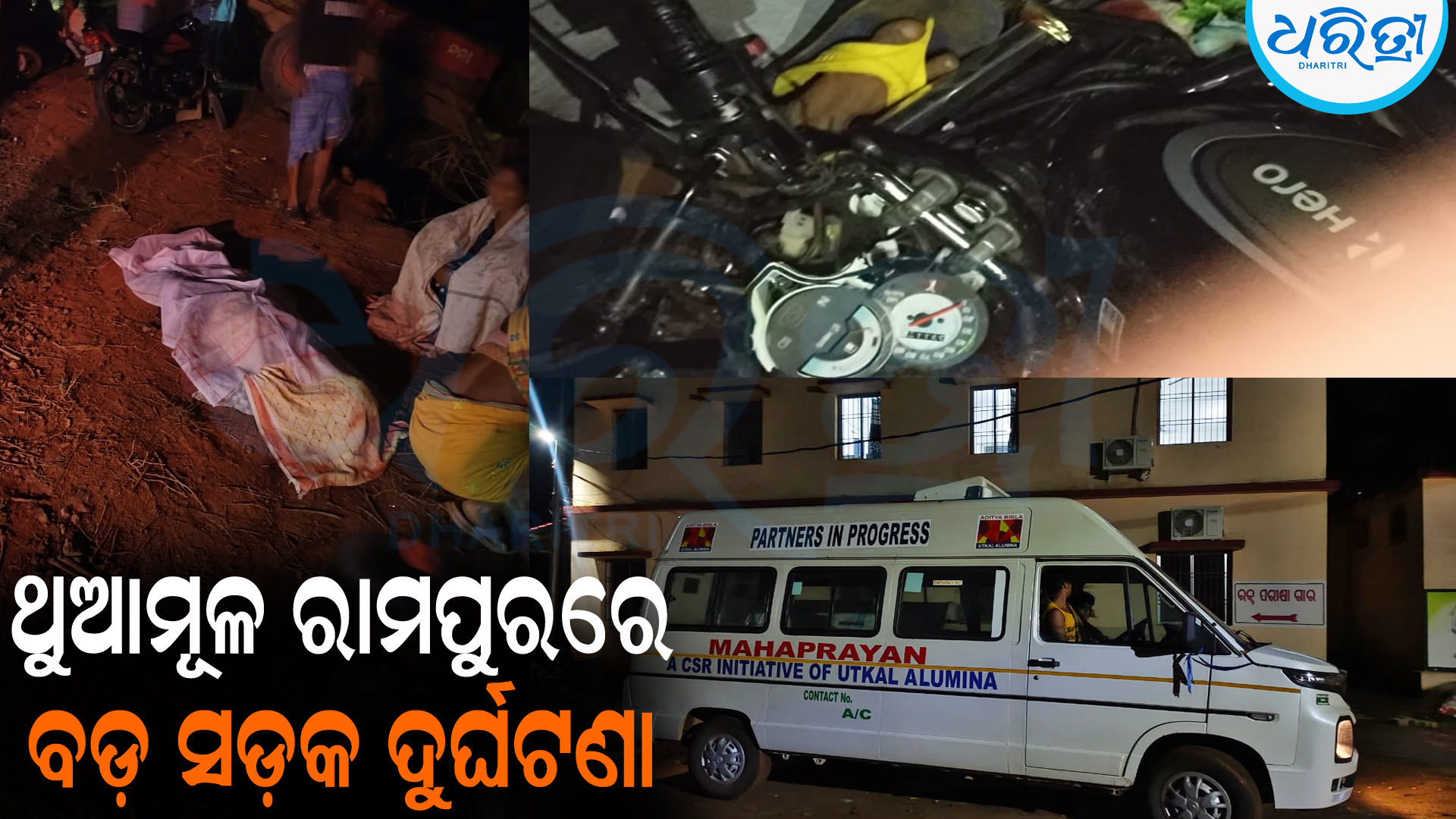 ଥୁଆମୂଳ ରାମପୁର, ୬ା୪ (ଦୁର୍ଗା କୀର୍ତ୍ତି): କଳାହାଣ୍ଡି ଜିଲା ଥୁଆମୂଳ ରାମପୁର ଥାନା ଅଞ୍ଚଳରେ ସୋମବାର ଦୁଇଟି ପୃଥକ ମର୍ମନ୍ତୁଦ ସଡ଼କ ଦୁର୍ଘଟଣା ଘଟି ୩ ଜଣଙ୍କ ମୃତ୍ୟୁ ହୋଇଥିବାବେଳେ ୩ ଜଣ ଗୁରୁତର ଆହତ ହୋଇଛନ୍ତି। ତେବେ ଦୁର୍ଘଟଣା ପରେ ଉପଯୁକ୍ତ କ୍ଷତିପୂରଣ ଦାବିରେ ମୃତକଙ୍କ ପରିବାର ଲୋକେ ଶବ ଜବତ କରିବାକୁ ଦେଉ ନ ଥିବାବେଳେ ଘଟଣାସ୍ଥଳରେ ଉତ୍ତେଜନା ପ୍ରକାଶ ପାଇଛି।