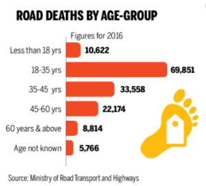 ନିକଟରେ ପ୍ରକାଶ ପାଇଥିବା ଓ୍ବାଲର୍ଡ ବ୍ୟାଙ୍କ ରିପୋର୍ଟ ଅନୁଯାୟୀ ଭାରତରେ ସଡ଼କ ଦୁର୍ଘଟଣା ଜନିତ ମୃତ୍ୟୁ ସଂଖ୍ୟା ବିଶ୍ୱରେ ସର୍ବାଧିକ। ଦୁର୍ଘଟଣାରେ ୧.୫ ଲକ୍ଷ ଲୋକ ପ୍ରାଣ ହରାଉଥିବାବେଳେ ବର୍ଷକୁ ୪.୫ ଲକ୍ଷ ପକ୍ଷାଘାତ୍ର ଶୀକାର ହେଉଛନ୍ତି। ଆଉ ଏହି କାରଣରୁ ଭାରତର ଜିଡିପି ୩.୧୪ ପ୍ରତିଶତ ହାନି ହେଉଛି।