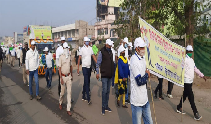 ବରଗଡ଼ ଅଫିସ,୧୮।୧: ରାଜ୍ୟରେ ସୋମବାରରୁ ସଡ଼କ ସୁରକ୍ଷା ମାସ ପାଳନ ଆରମ୍ଭ ହୋଇଛି। ଆସନ୍ତା ଫେବୃୟାରୀ ୧୭ ତାରିଖ ପର୍ଯ୍ୟନ୍ତ ଏହା ପାଳନ କରାଯିବ। ଏହି ଅବସରରେ ବରଗଡ଼ ସହରରେ ଏକ ସଚେତନତା ପଦଯାତ୍ରା ପରିକ୍ରମା କରିଥିଲା । ଜିଲାପାଳ ଜ୍ୟୋତିରଞ୍ଜନ ପ୍ରଧାନ ଏବଂ ଏସ୍ପି ପଦ୍ମିନୀ ସାହୁ ପତାକା ଦେଖାଇ ପଦଯାତ୍ରାକୁ ଶୁଭାରମ୍ଭ କରିଥିଲେ। ଏହା ଭଟଲି ଛକରୁ ବାହାରି ଗାନ୍ଧୀଛକ ଦେଇ ଥାନା ଛକ ପର୍ଯ୍ୟନ୍ତ ଯାଇଥିଲା । ଏଥିରେ ଜିଲାସ୍ତରୀୟ ଅଧିକାରୀ, ସ୍ବେଛାସେବୀ ଅନୁଷ୍ଠାନର ସଦସ୍ୟବୃନ୍ଦ ପ୍ରମୁଖ ସକ୍ରିୟ ଅଂଶଗ୍ରହଣ କରିଥିଲେ। ଆଞ୍ଚଳିକ ପରିବହନ ଅଧିକାରୀ ମାନସ ରଞ୍ଜନ ସାହୁ କାର୍ଯ୍ୟକ୍ରମ ସଂଯୋଜନା କରିଥିଲ ।