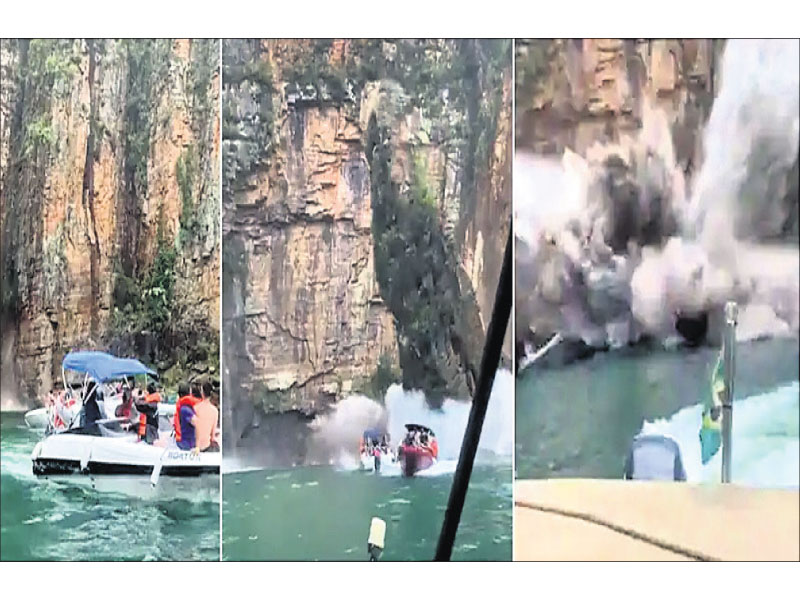 ବେଲୋ ହୋରିଜୋଣ୍ଟେ,୧୦ା୧: ବ୍ରାଜିଲର ସୁଲ୍ ମିନାସ୍ସ୍ଥିତ ଏକ ଜଳପ୍ରପାତରେ ଶିଳା ପାଚେରି ଭୁଶୁଡ଼ି ଦୁଇଟି ମୋଟର ବୋଟ୍ ଉପରେ ପଡ଼ିବାରୁ ୭ ଜଣଙ୍କର ମୃତ୍ୟୁ ଘଟିବା ସହ ୯ ଜଣ ଆହତ ହୋଇଛନ୍ତି। ଅନ୍ୟ ୩ ଜଣ ନିଖୋଜ ଥିବା ଜଣାପଡିଛି। ମିନାସ ଗେରାଇସ୍ ରାଜ୍ୟର ଲୋକପ୍ରିୟ ପର୍ଯ୍ୟଟନ ସ୍ଥଳ କ୍ୟାପିଟୋଲିଓ କାନ୍ୟୋନ୍ସରେ ଏହି ଦୁର୍ଘଟଣା ଘଟିଛି। ଦୁର୍ଘଟଣାର ଭିଡିଓ ସୋସିଆଲ ମିଡିଆରେ ଭାଇରାଲ ହୋଇଛି। ଆହତଙ୍କ ମଧ୍ୟରୁ ଜଣେ ଗୁରୁତର ଥିବାବେଳେ ଅନ୍ୟମାନଙ୍କର ହାଡ଼ ଭାଙ୍ଗିଛି। ସେମାନଙ୍କୁ ସ୍ଥାନୀୟ ହସ୍ପିଟାଲରେ ଭର୍ତ୍ତି କରାଯାଇଛି। ଉକ୍ତ ଅଞ୍ଚଳରେ ୨ ସପ୍ତାହ ହେଲା ଲଗାଣ ବର୍ଷାରେ ଶିଳା ପାଚେରି ଦୁର୍ବଳ ହୋଇପଡ଼ିଥିବା କୁହାଯାଇଛି।