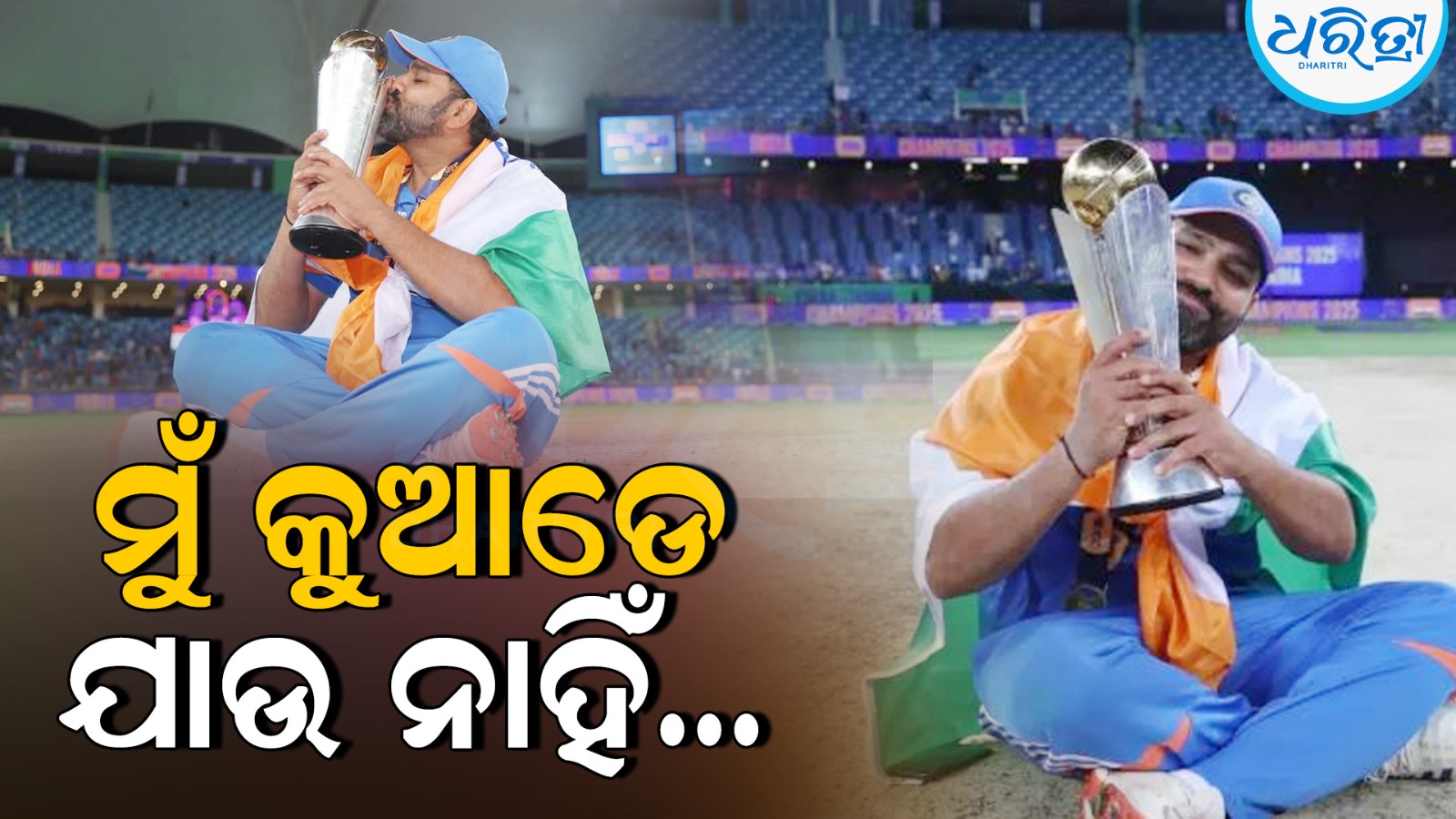 ନୂଆଦିଲ୍ଲୀ,୧୦।୩: ରବିବାର ଭାରତ ଆଇସିସି ଚାମ୍ପିଅନ୍ସ ଟ୍ରଫି ଜିତିବା ମାତ୍ରେ ସମଗ୍ର ଦେଶରେ ଉତ୍ସବ ପାଳନ କରାଯାଇଥିଲା। ଯେମିତି ସାରା ଦେଶରେ ହୋଲି ପୂର୍ବରୁ ଦୀପାବଳି ପାଳନ ଆରମ୍ଭ ହୋଇଗଲା। ଅଧିନାୟକ ରୋହିତ ଶର୍ମା ଏବଂ ବିରାଟ କୋହଲି ଷ୍ଟମ୍ପ ଧରି ଦାଣ୍ଡିଆ ଆରମ୍ଭ କରିଥିଲେ। ରୋହିତ-ବିରାଟଙ୍କ ଉତ୍ସବ ଦେଖି କ୍ରିକେଟ ପ୍ରେମୀଙ୍କ ମନରେ ଏହି ପ୍ରଶ୍ନ ମଧ୍ୟ ଆସିଥିଲା ଯେ ଏହା କ’ଣ ଏହି ଦୁଇଜଣଙ୍କ ପାଇଁ ଶେଷ ICC ଟୁର୍ଣ୍ଣାମେଣ୍ଟ? ଏହି ପ୍ରଶ୍ନଟି ସିଧାସଳଖ ବିରାଟ କୋହଲିଙ୍କୁ ପଚରାଯାଇ ନଥିଲା, କିନ୍ତୁ ରୋହିତ ଶର୍ମାଙ୍କୁ ନିଶ୍ଚିତ ଭାବରେ ୨୦୨୭ ବିଶ୍ୱକପ ପାଇଁ ଯୋଜନା ବିଷୟରେ ପଚରାଯାଇଥିଲା। ଅଧିନାୟକ ରୋହିତ ଏହାର ବିସ୍ତାରିତ ଉତ୍ତର ଦେଇଥିଲେ ଏବଂ ତାଙ୍କ ବକ୍ତବ୍ୟ ଶେଷ କରି କହିଥିଲେ ଯେ ମୁଁ କୌଣସି ସ୍ଥାନକୁ ଯାଉନାହିଁ। ମୁଁ ଏଠାରେ ଅଛି।