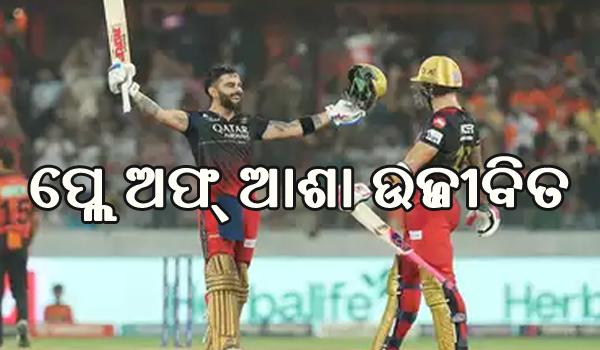 ହାଇଦ୍ରାବାଦ,୧୮।୫: ହାଇଦ୍ରାବାଦସ୍ଥିତ ରାଜୀବ ଗାନ୍ଧୀ ଇଣ୍ଟରନ୍ୟାଶନାଲ ଷ୍ଟାଡିୟମରେ ଗୁରୁବାର ଖେଳାଯାଇଥିବା ଆଇପିଏଲ୍‌ର ୬୫ତମ ମ୍ୟାଚରେ ବିରାଟ କୋହଲିଙ୍କ ଦମ୍‌ଦାର ଶତକୀୟ ଇନିଂସ୍‌ ବଲରେ ରୟାଲ ଚ୍ୟାଲେଞ୍ଜର୍ସ ବାଙ୍ଗାଲୋର(ଆର୍‌ସିବି) ୮ ଉଇକେଟରେ ବିଜୟୀ ହୋଇଛି। ଏହି ବିଜୟ ସହ ୧୪ ପଏଣ୍ଟ ପାଇ ଆର୍‌ସିବି ପ୍ଲେ ଅଫ୍‌ର ନିକଟତର ହୋଇଛି।
