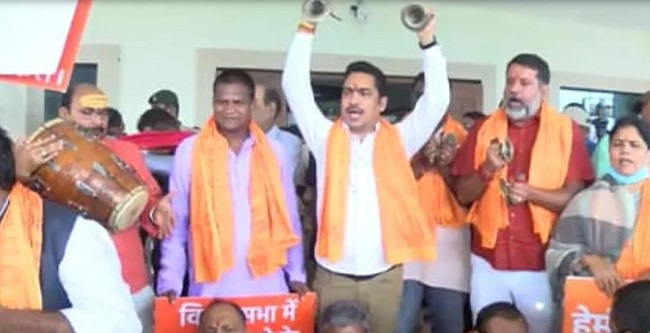 ରାଞ୍ଚି,୬ ।୯: ଝାଡ଼ଖଣ୍ଡ ବିଧାନସଭାରେ ସୋମବାର ତାଣ୍ଡବ ହୋଇଛି । ବିଧାନସଭା ପରିସରରେ ନମାଜ ପାଇଁ ଭିନ୍ନ କୋଠରୀ ଆଲଟମେଣ୍ଟକୁ ନେଇ ଏହା ହୋଇଛି । ଏହାକୁ ନେଇ ଭାରତୀୟ ଜନତା ପାର୍ଟି(ଭାଜପା) ବିଧାୟକମାନେ ହଙ୍ଗାମା କରିଛନ୍ତି । ନମାଜ ପାଇଁ ଯୋଗାଇ ଦିଆଯାଇଥିବା କୋଠରୀକୁ ରଦ୍ଦ କରିବାକୁ ଦାବି କରିଛନ୍ତି । କେବଳ ଏତିକି ନୁହେଁ ବିଧାନସଭା ପରିସରରେ ହିଁ ବିଧାୟକମାନେ ‘ଭଜନ-କିର୍ତ୍ତନ’ ଆରମ୍ଭ କରିଦେଇଥିଲେ । ସୋମବାର ସକାଳୁ ହିଁ ବିଧାନସଭାରେ ଭକ୍ତିର ମାହୋଲ ସୃଷ୍ଟି ହୋଇଥିଲା । ଭାଜପା ବିଧାୟକ ଢୋଲ-ଗିନି, ଘଣ୍ଟି ଆଦି ଧରି ବିଧାନସଭା ପରିସରରେ ପହଞ୍ଚିଥିଲେ । ସେଠାରେ ଭାଜପାର ବିଧାୟକମାନେ ‘ହରେ ରାମ ହରେ କୃଷ୍ଣ’, ‘ହର ହର ମହାଦେବ’ ଓ ‘ଜୟ ଶ୍ରୀରାମ’ ଧ୍ୱନିରେ ଚତୁର୍ଦ୍ଦିଗ କମ୍ପାଇ ଦେଉଥିଲେ । ଦେବଘରର ଭାଜପା ବିଧାୟକ ନାରାୟଣ ଦାସ ତ ପୂଜାରୀ ବେଶଭୂଷାରେ ପହଞ୍ଚିଯାଇଥିଲେ । ଭାଜପା ବିଧାୟକମାନେ ସଫା ସଫା କହିଥିଲେ କି ସେମାନଙ୍କ ବିରୋଧ ସେପର୍ଯ୍ୟନ୍ତ ଜାରି ରହିବ ଯେପର୍ଯ୍ୟନ୍ତ ନମାଜ ପାଇଁ ହୋଇଥିବା ରୁମ ଆଲଟମେଣ୍ଟ ଆଦେଶକୁ ରଦ୍ଦ କରି ଦିଆ ନ ଯାଇଛି । ଅଥବା ଅଲଗା ଅଲଗା ଧର୍ମ ପାଇଁ କୋଠରୀ ଯୋଗାଇ ଦିଆ ନ ଯାଇଛି । କେବଳ ବିଧାନସଭା ବାହାରେ ନୁହେଁ ଭିତରେ ବି ହଙ୍ଗାମା ହୋଇଛି । ବିଧାନସଭା କାର୍ଯ୍ୟ ଆରମ୍ଭ ହେବା ମାତ୍ରେ ଭାଜପା ବିଧାୟକମାନେ ‘ଜୟ ଶ୍ରୀରାମ’ ସ୍ଲୋଗାନ ଦେଇଥିଲେ ଓ ବେଲ ପର୍ଯ୍ୟନ୍ତ ଚାଲି ଯାଇଥିଲେ । ଏହାପରେ ସ୍ପିକର ରବିନ୍ଦ୍ର ନାଥ ମହତୋ ବିଧାୟକଙ୍କୁ ଫେରିଯିବାକୁ କହିଥିଲେ ହେଲେ ଏକଥା କେହି ଶୁଣି ନ ଥିଲେ । ଶେଷରେ ବିଧାନସଭାକୁ ସ୍ଥଗିତ ରଖାଯାଇଥିଲା ।