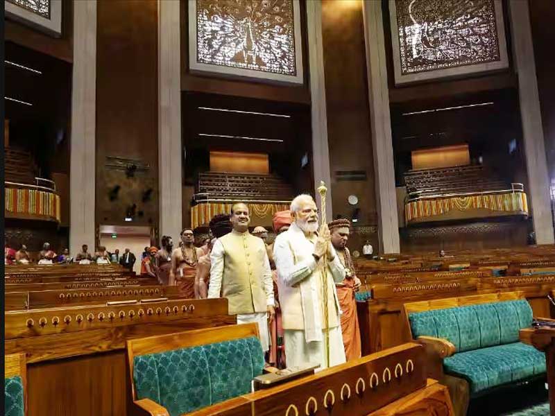 ଅତୀତର ଏହି ପ୍ରତୀକକୁ ଗ୍ରହଣ କରି ଆମର ବର୍ତ୍ତମାନର ମୂଲ୍ୟବୋଧକୁ ମଜବୁତ କରିବା। ଏହା ଲୋକସଭା ବାଚସ୍ପତିଙ୍କ ଆସନ ନିକଟରେ ସ୍ଥାପିତ କରାଯାଇଛି।