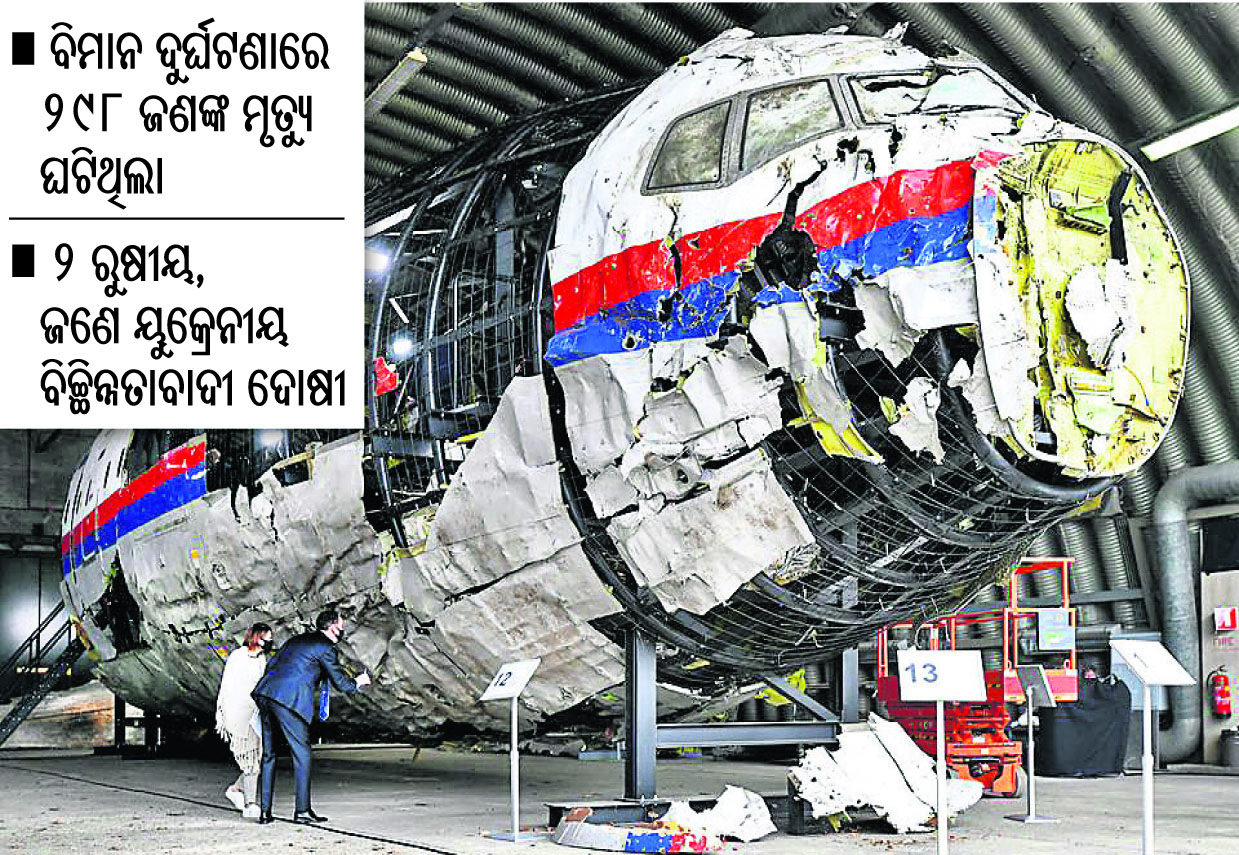 ଆମ୍ଷ୍ଟରଡାମ,୧୮ା୧୧:୨୦୧୪ ଜୁଲାଇ ୧୭ରେ ମାଲେସିଆ ଏୟାରଲାଇନ୍ସର ଏମ୍ଏଚ୍୧୭ ବିମାନ ଆମ୍ଷ୍ଟରଡାମ୍ରୁ କୁଆଲାଲମ୍ପୁର ଯାତ୍ରା କରୁଥିବାବେଳେ ଯୁଦ୍ଧ ପ୍ରଭାବିତ ୟୁକ୍ରେନ୍ ଆକାଶରେ ରାଡାର ବାହାରକୁ ଚାଲିଯାଇଥିଲା। ବିମାନଟି ଦୁର୍ଘଟଣାଗ୍ରସ୍ତ ହେବା ପରେ ୨୮୩ ଯାତ୍ରୀ ଓ ୧୫ କ୍ରିଉ ମେମ୍ବରଙ୍କ ମୃତ୍ୟୁ ଘଟିଥିଲା। ମୃତକଙ୍କ ମଧ୍ୟରେ ୮୦ ଶିଶୁ ଥିଲେ। ଏହି ବିମାନକୁ ରୁଷିଆ ନିର୍ମିତ ଏକ ବକ୍ ମିଶାଇଲ ଧକ୍କା ଦେବା ଫଳରେ ଏହା ଦୁର୍ଘଟଣାଗ୍ରସ୍ତ ହୋଇଥିବା ନେଇ ଡଚ୍ ସେଫ୍ଟି ବୋର୍ଡ (ଡିଏସ୍ବି) ପକ୍ଷରୁ ୧୫ ମାସ ଧରି ତଦନ୍ତ କରାଯିବା ପରେ ୨୦୧୫ ଡିସେମ୍ବରରେ ଜଣାପଡ଼ିଥିଲା। ଉକ୍ତ କ୍ଷେପଣାସ୍ତ୍ରକୁ ରୁଷିଆରୁ କିଣାଯାଇଥିଲା ଏବଂ ମସ୍କୋ ସମର୍ଥତ୍ତ ବିଚ୍ଛିନ୍ନତାବାଦୀଙ୍କ ଦଖଲରେ ଥିବା ଏକ ପଡ଼ିଆରୁ ତାକୁ ଉଦ୍କ୍ଷେପଣ କରାଯାଇଥିବା ନେଇ ୨୦୧୬ ସେପ୍ଟେମ୍ବରରେ ଆପରାଧିକ ତଦନ୍ତକାରୀଙ୍କ ଏକ ଅନ୍ତର୍ଜାତୀୟ ଟିମ୍ ସ୍ପଷ୍ଟ କରିଥିଲା। ଏହି ମାମଲାରେ ନେଦରଲାଣ୍ଡ୍ସସ୍ଥିତ ଏକ କୋର୍ଟ ଗୁରୁବାର ୨ ରୁଷୀୟ ଏବଂ ଜଣେ ୟୁକ୍ରେନୀୟ ବିଚ୍ଛିନ୍ନତାବାଦୀଙ୍କୁ ଦୋଷୀ ସାବ୍ୟସ୍ତ କରିଛନ୍ତି। ୨୯୮ ଜଣଙ୍କୁ ହତ୍ୟା କରିବା ଅଭିଯୋଗରେ ଅଦାଲତ ୩ ଜଣଙ୍କୁ ଆଜୀବନ କାରାଦଣ୍ଡାଦେଶ ଦେଇଛନ୍ତି। ତେବେ ପ୍ରମାଣ ଅଭାବରୁ ଆଉ ଜଣେ ରୁଷୀୟଙ୍କୁ ଛାଡ଼ି ଦିଆଯାଇଛି।