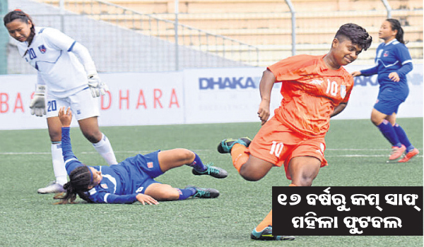 ଢାକା, ୨୧।୩: ସ୍ଥାନୀୟ ବିଏସ୍ଏସ୍ଏସ୍ ମୁସ୍ତାଫା କମଲ ଷ୍ଟାଡିୟମରେ ୧୭ ବର୍ଷରୁ କମ୍ ସାଫ୍ ମହିଳା ଫୁଟବଲ ଚାମ୍ପିୟନଶିପ୍ ଆରମ୍ଭ ହୋଇଛି। ସୋମବାର ଅନୁଷ୍ଠିତ ପ୍ରଥମ ମ୍ୟାଚରେ ଶିଲ୍ଜି ଶାଜିଙ୍କ ହ୍ୟାଟ୍ରିକ ବଳରେ ଭାରତ ୪-୧ ଗୋଲରେ ନେପାଳକୁ ହରାଇ ଦେଇଛି।