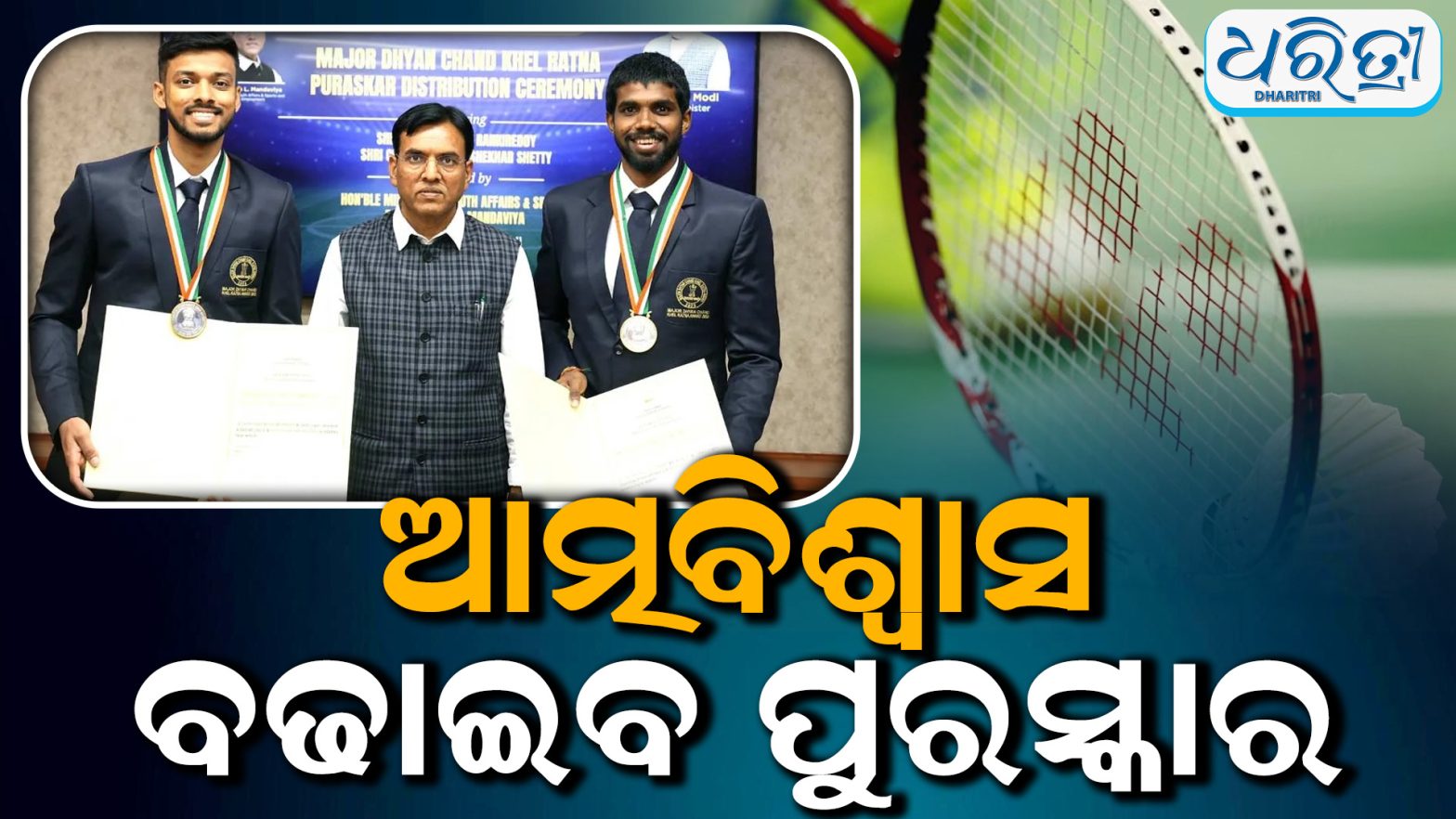 ନୂଆଦିଲ୍ଲୀ,୩।୫: ଭାରତର ଷ୍ଟାର ବ୍ୟାଡ୍ମିଣ୍ଟନ ଖେଳାଳି ଚିରାଗ ଶେଟ୍ଟି ଓ ସାତ୍ତ୍ୱିକସାଇରାଜ ରାଙ୍କିରେଡ୍ଡୀ ଶେଷରେ ବହୁଦିନ ପରେ ମେଜର ଧ୍ୟାନଚାନ୍ଦ ଖେଳରନତ୍ ପୁରସ୍କାର ପାଇଛନ୍ତି। କେନ୍ଦ୍ର କ୍ରୀଡ଼ାମନ୍ତ୍ରୀ ମନସୁଖ ମାଣ୍ଡବ୍ୟ ଏଠାରେ ଗୁରୁବାର ଖେଳାଳି ଦ୍ୱୟଙ୍କୁ ଏହି ପୁରସ୍କାର ପ୍ରଦାନ କରିଛନ୍ତି। ଖେଳାଳି ଦ୍ୱୟ କହିଛନ୍ତି, ଫିଟ୍ନେସ୍ ସମସ୍ୟା ଯୋଗୁ ସେମାନେ ଏବେ ଖରାପ ସମୟ ଦେଇ ଗତି କରୁଛନ୍ତି। ଏହି ପୁରସ୍କାର ସେମାନଙ୍କୁ ଏହି ସମସ୍ୟାରୁ ଉଦ୍ଧାର ପାଇବାରେ ସହାୟକ ହେବ ବୋଲି ସେମାନେ ଆଶା କରୁଛନ୍ତି।