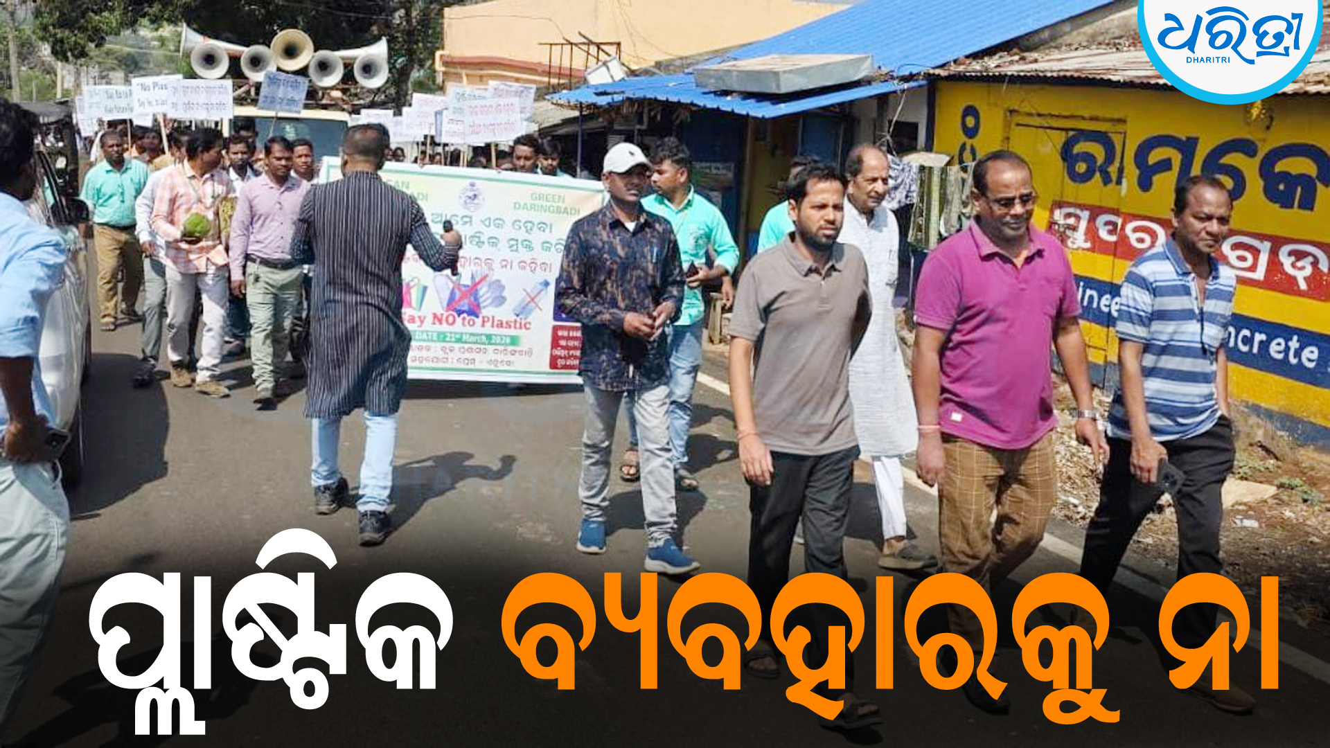 ଦାରିଙ୍ଗବାଡ଼ି,୨୧।୩(ଅରୁଣ ସାହୁ): କନ୍ଧମାଳ ଜିଲା ଦାରିଙ୍ଗବାଡି ବ୍ଲକ ପ୍ରଶାସନ ପକ୍ଷରୁ ପ୍ଲାଷ୍ଟିକ ବ୍ୟବହାରକୁ ନା କହିବା ଓ ହୋଟେଲ ରେଷ୍ଟୁରାଣ୍ଟରେ ପ୍ଲାଷ୍ଟିକ ବଦଳରେ ଶିଆଳି ଖଲିପତ୍ର ବ୍ୟବହାର କରିବା ଡମ୍ପିୟାର୍ଡ଼କୁ ସଠିକ ବ୍ୟବହାର କରିବାକୁ ନେଇ ଶନିବାର ଏକ ସଚେତନ ଶୋଭାଯାତ୍ରା ବ୍ଲକ କାର୍ଯ୍ୟାଳୟରୁ ବାହାରିଥିଲା। ବିଡ଼ିଓ ପ୍ରୀତିରଞ୍ଜନ ରଥଙ୍କ ଆହ୍ବାନକ୍ରମେ ବ୍ଲକ ଅଧ୍ୟକ୍ଷ ସୁଶାନ୍ତ କୁମାର ପ୍ରଧାନ, ତହସିଲଦାର ଧୀରଜ କୁମାର ପାତ୍ର, ବ୍ଲକ ସମ୍ପ୍ରସାରଣ ଅଧିକାରୀ ବିଶ୍ୱଜିତ ଜାଲିଙ୍କ ସମେତ ସ୍ଥାନୀୟ ସ୍ବେଛାସେବୀ ସଂଗଠନ, ବଣିକ ସଙ୍ଘ, ହୋଟେଲ ସଂଘ, ବରିଷ୍ଠ ନାଗରିକ ସଂଘ, ମହିଳା ସ୍ବୟଂ ସହାୟକ ଗୋଷ୍ଠୀ, ବ୍ଲକ ଓ ତହସିଲ କର୍ମଚାରୀ ସ୍ଥାନୀୟ ଜନସାଧାରଣ ପ୍ରମୁଖ ଏହି ଶୋଭାଯାତ୍ରାରେ ସାମିଲ ହୋଇଥିଲେ।