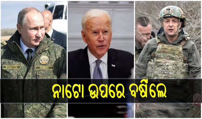କ୍ୱିଭ୍,୨୨।୩: ରୁଷିଆ ଏବଂ ୟୁକ୍ରେନ ମଧ୍ୟରେ ୨୬ ଦିନ ହେବ ଯୁଦ୍ଧ ଚାଲିଛି। ରୁଷିଆର କ୍ଷେପଣାସ୍ତ୍ର ମାଡରେ ୟୁକ୍ରେନର ଅନେକ ସହର କ୍ଷତିଗ୍ରସ୍ତ ହୋଇଛି। ଯୁଦ୍ଧ ମଧ୍ୟରେ ୟୁକ୍ରେନ ରାଷ୍ଟ୍ରପତି ଭୋଲୋଦିମିର ଜେଲେନସ୍କି ନାଟୋ ଉପରେ ଖୋଲାଖୋଲି ବର୍ଷିଛନ୍ତି। ଯୁଦ୍ଧରେ ପ୍ରତ୍ୟକ୍ଷ ସମର୍ଥନ ଅଭାବରୁ ରାଗିଯାଇ ଜେଲେନସ୍କି ନାଟୋ ରୁଷିଆକୁ ଭୟ କରୁଥିବା କହିଛନ୍ତି।
